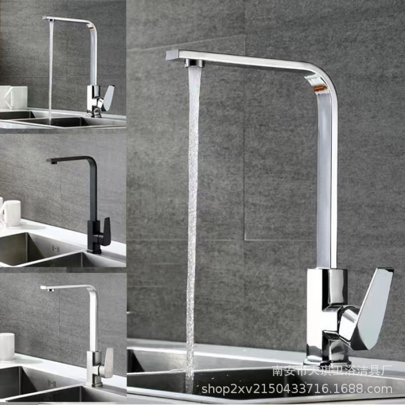 冷热厨房平三通大弯水龙头家用可旋转万向防溅洗碗洗菜盆水龙头