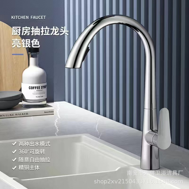 外国貿易クロスボーダー厨房スプリング式野菜鉢蛇口回転ストレッチ水槽冷水お湯ダブル機能単孔