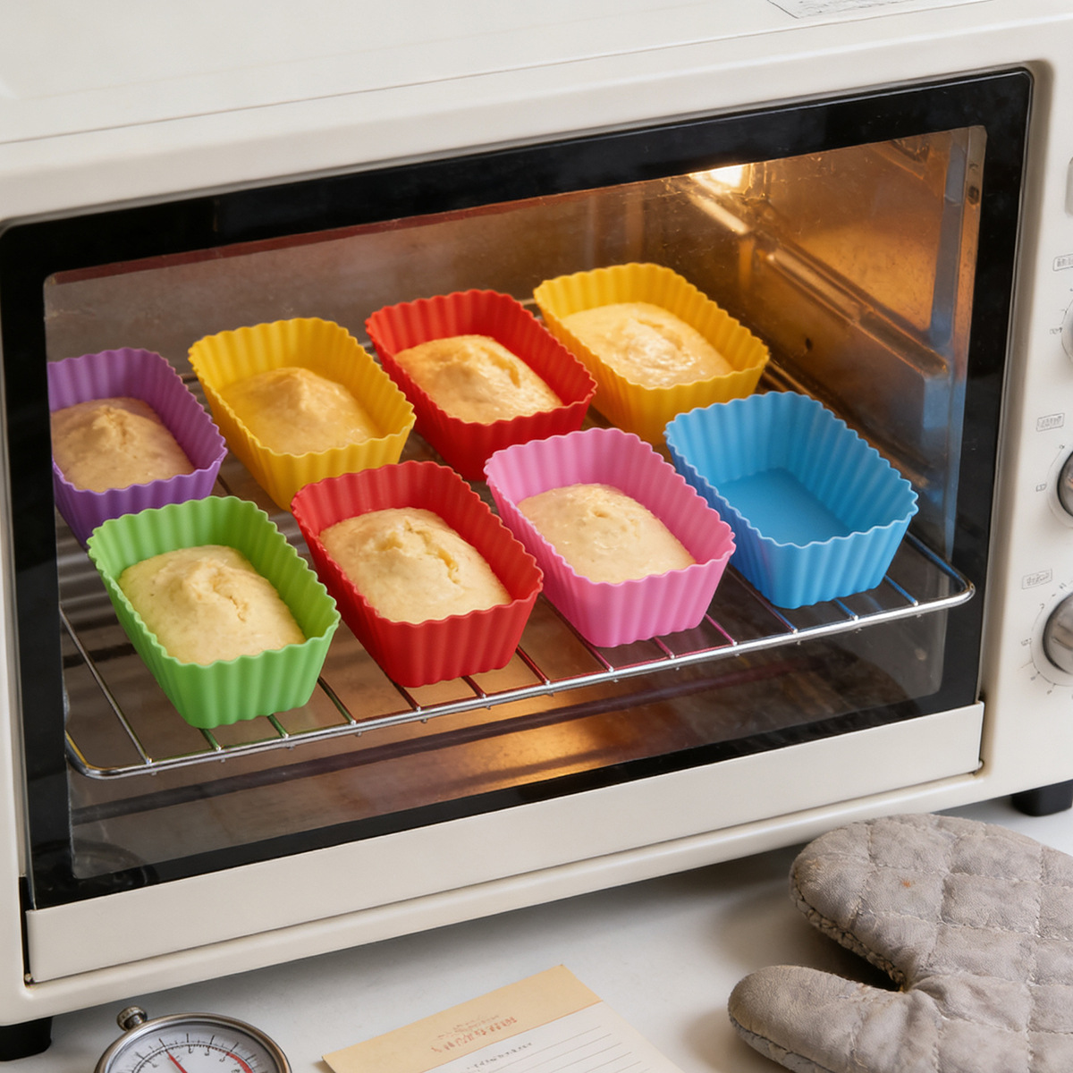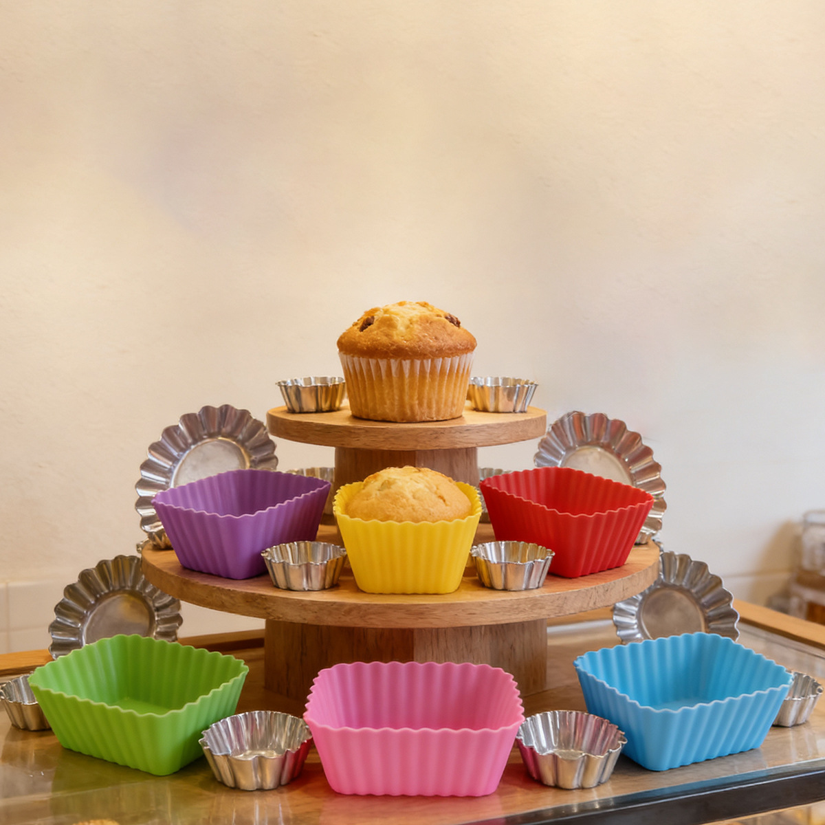 Amazonの新しいシリコンマフィンカップベーキングスクエアラウンド長方形厚みのあるケーキ型セットカップケーキ