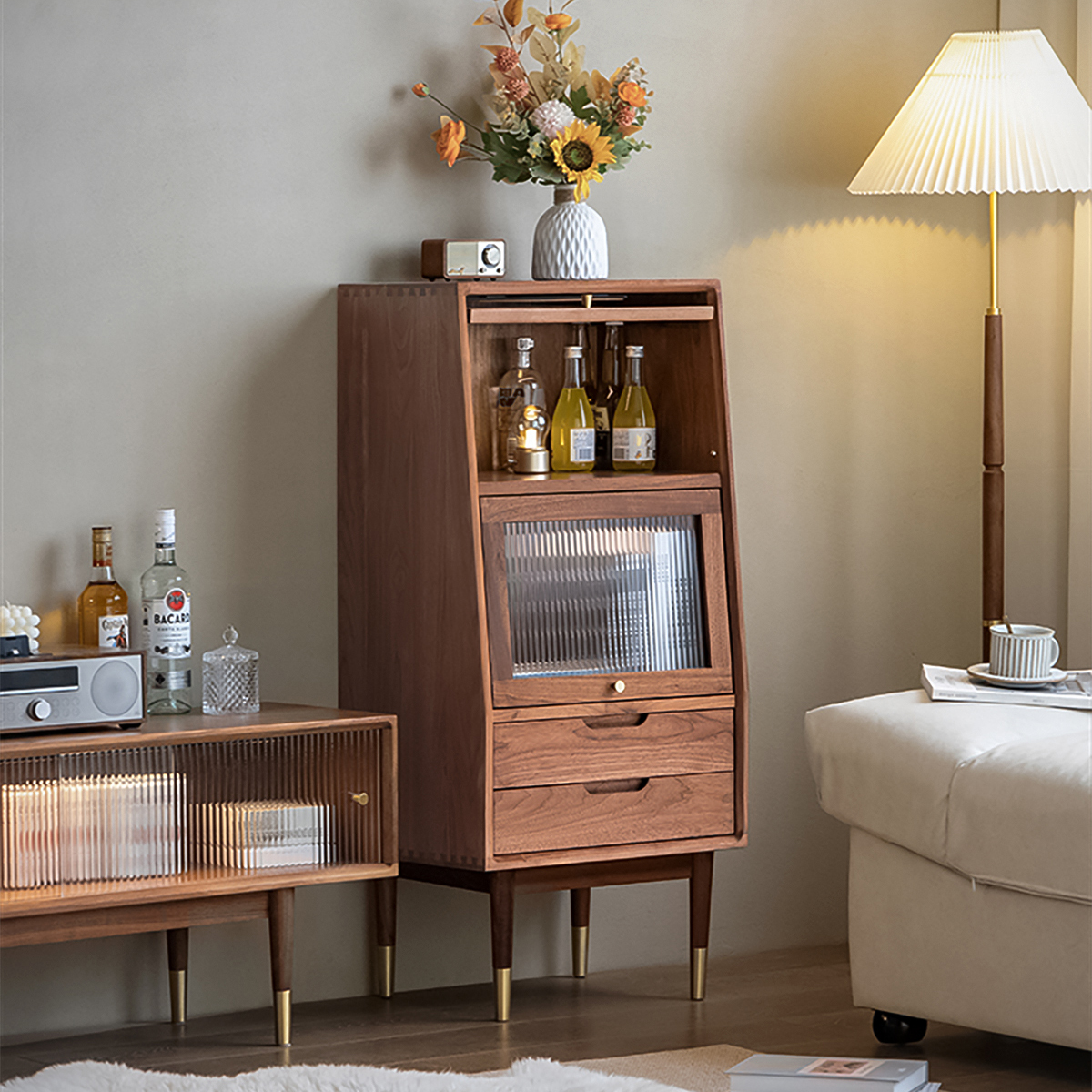 ブラックウォールナットテレビサイドキャビネットリビングルーム無垢材バケットキャビネットソファサイドキャビネット収納キャビネットレストランワインキャビネット