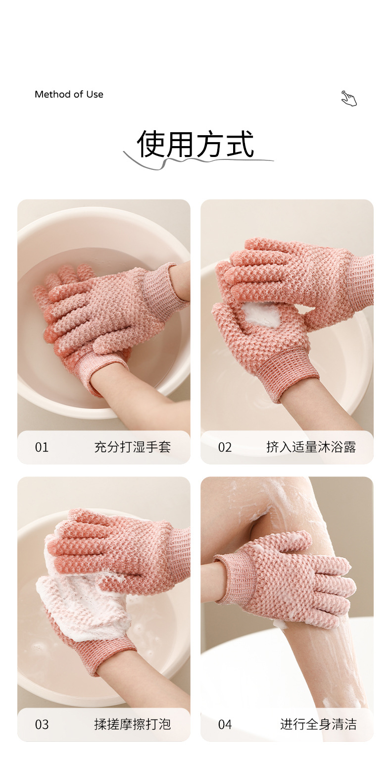 五指沐浴手套搓澡神器抗菌家用洗澡去角质男女专用不伤皮肤