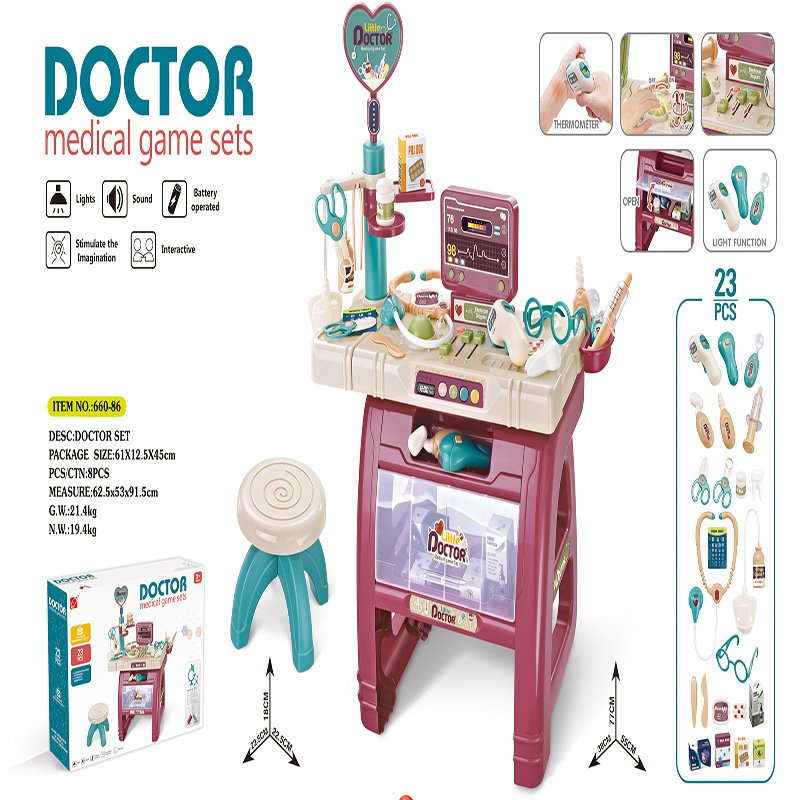 外国貿易の子供のままごとのシミュレーションは医者のおもちゃのセットの仕事台の看護婦の注射の医療の小さい診療所を演じます。