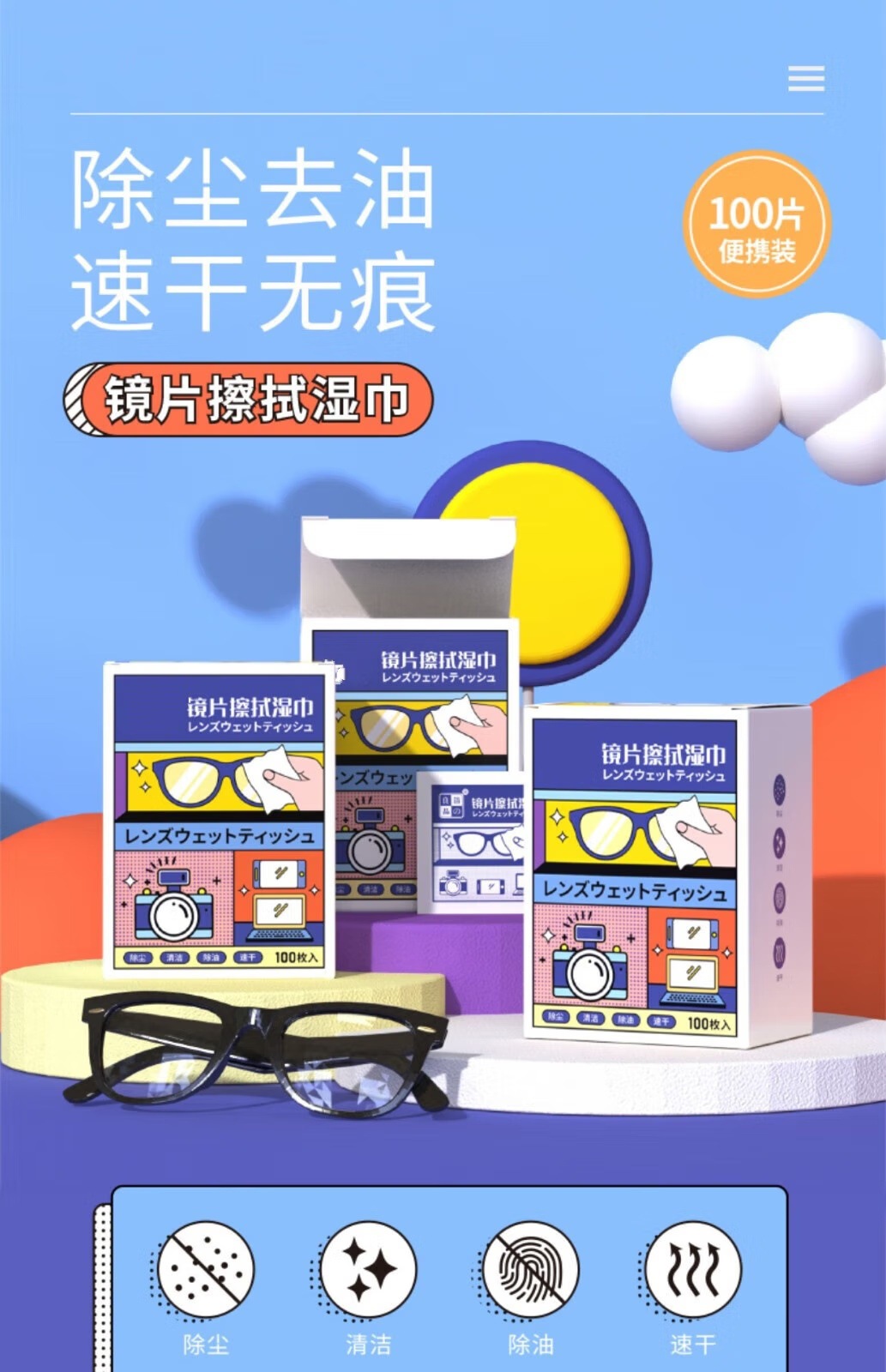 メガネ拭き、レンズ拭き、メガネクロス、レンズ洗浄・除菌・脱脂・ケア、メガネ拭き、除染