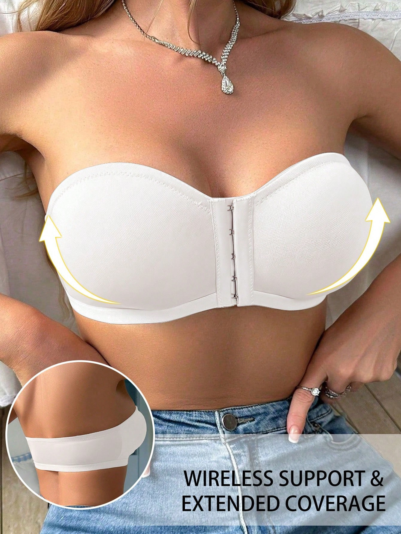 国境を越えた人気の女性用フロントバックルストラップレスチューブトップ、滑り止め、露出防止、オフショルダー、美しい背中、ヨーロッパとアメリカの売れ筋スポット卸売