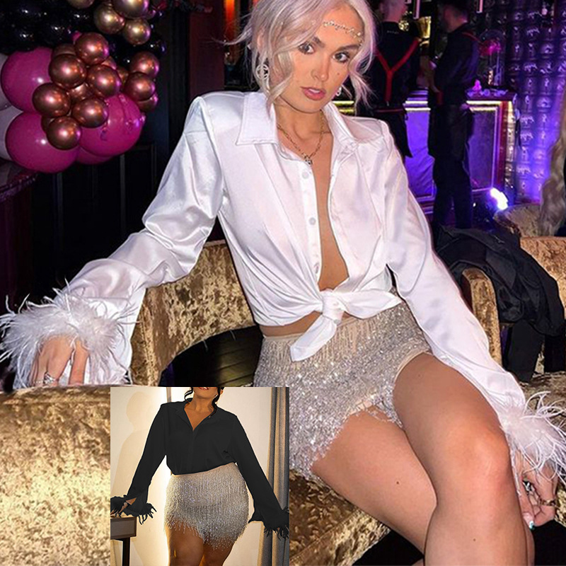 Zl1883スポット2022クロスボーダー独立駅新型女装夏純色ファッションセクシー羽長袖シャツ