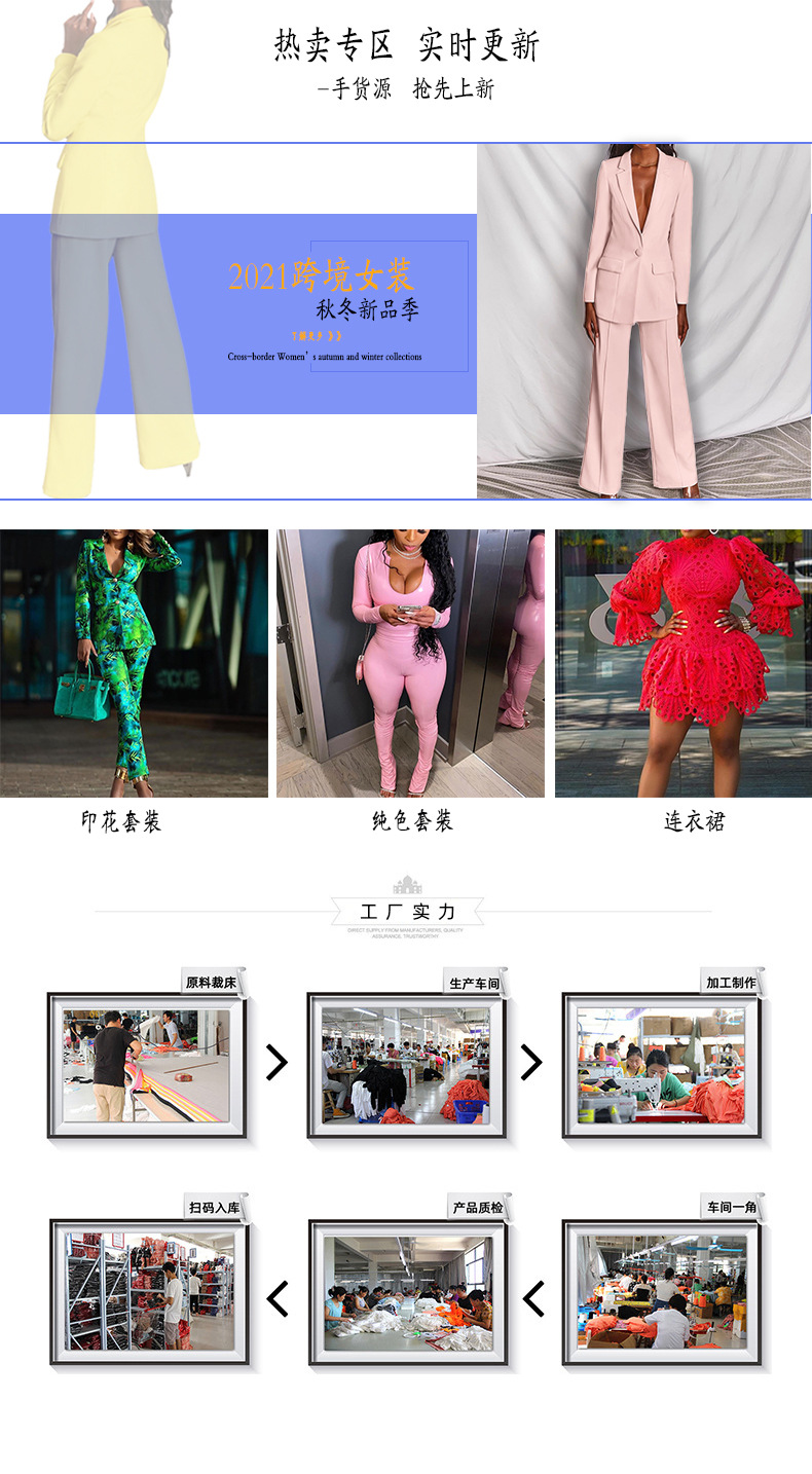 欧美跨境新款女装PU皮时尚职业吊带包臀裙长袖翻领开衫两件套女装