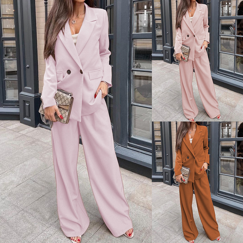 ZL1775 スポット婦人服秋新作無地カジュアルスーツワイドレッグパンツスーツ 2 点セット