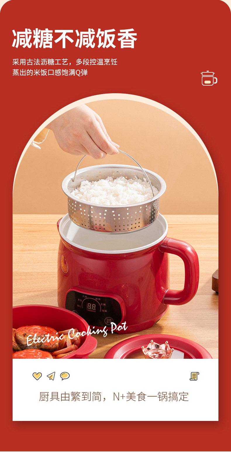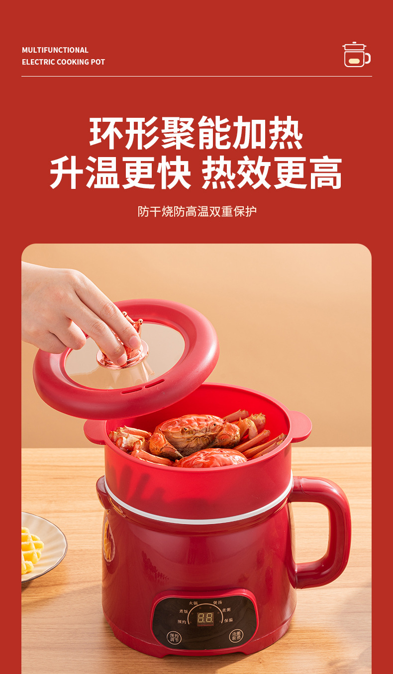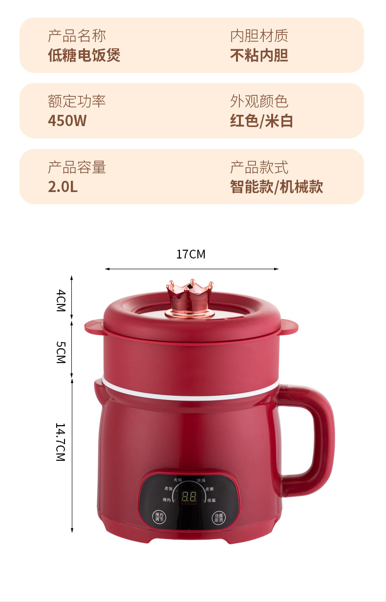 低電力炊飯器、多機能電気調理器、寮用小型インスタントラーメン鍋、鍋、小型電気鍋、インテリジェントオールインワン鍋