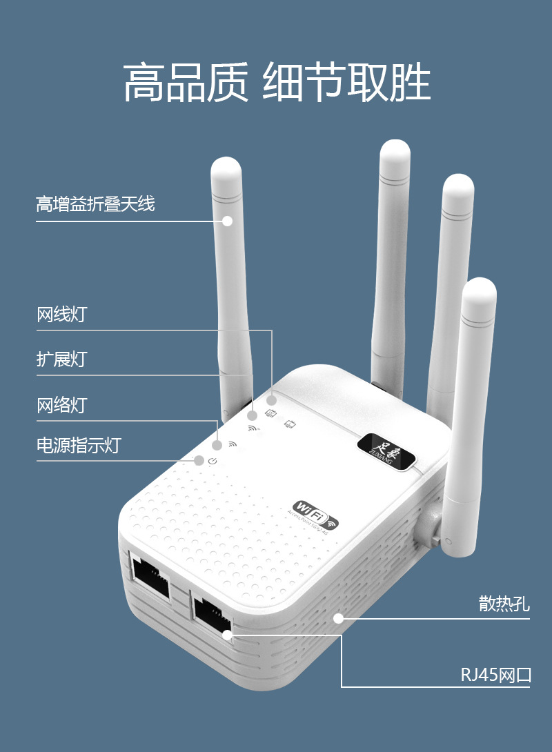 Wifi中継器1200Mrepeater4アンテナルーティングネットワーク拡張器無線信号増幅器