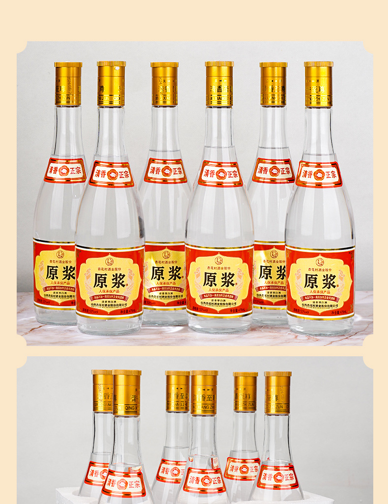 山西杏花村42度红盖汾475ml清香型玻璃瓶白酒