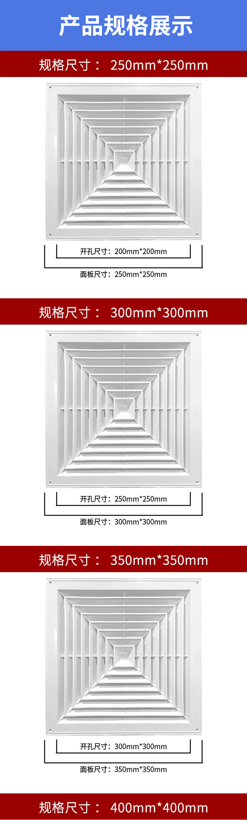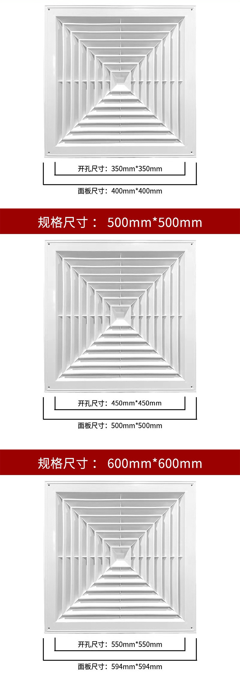 铝合金方形散流器中央空调出风口扣板方形百叶通风口吊顶排风设备
