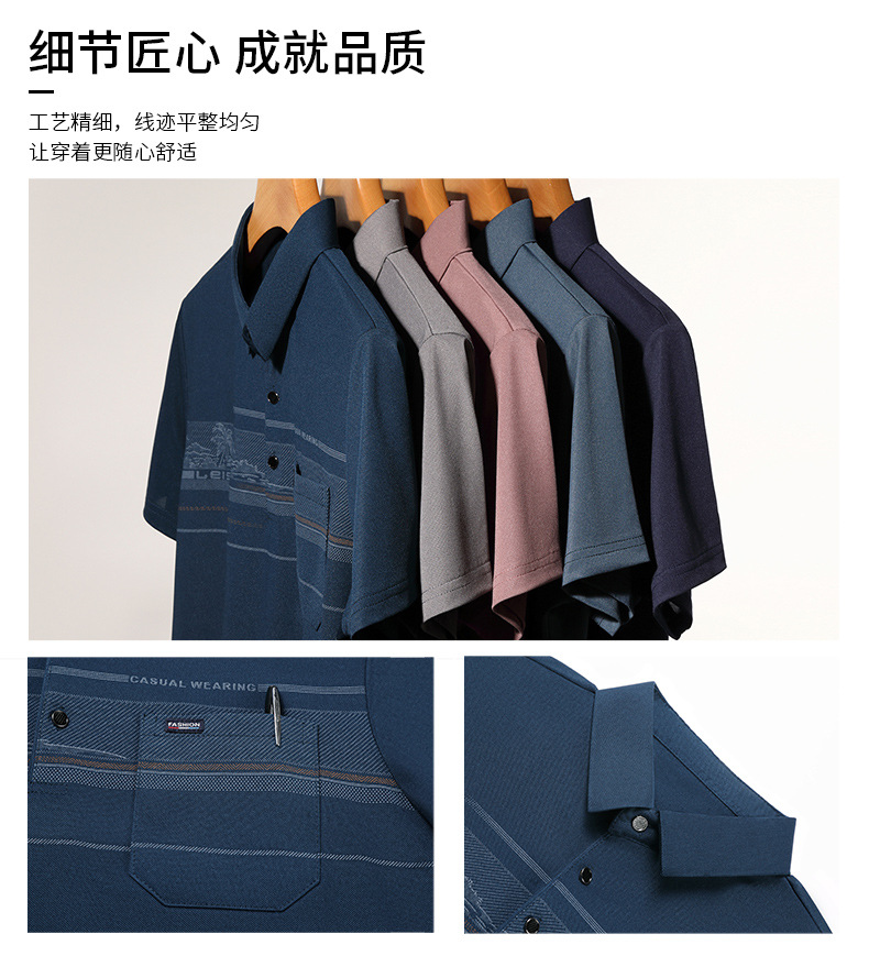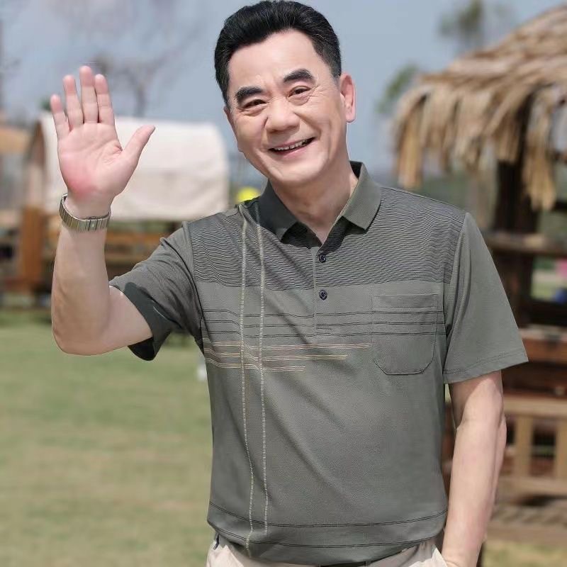 お父さんの夏服のtシャツの中年の男性の半袖のtシャツのシルクの綿の襟の上着の中で高齢者の服のおじいさんの男装