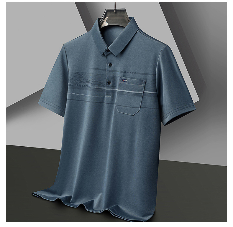 新しいお父さん夏半袖 Tシャツ中高年男性トップス中年男性シルケットコットンカジュアルポロシャツ