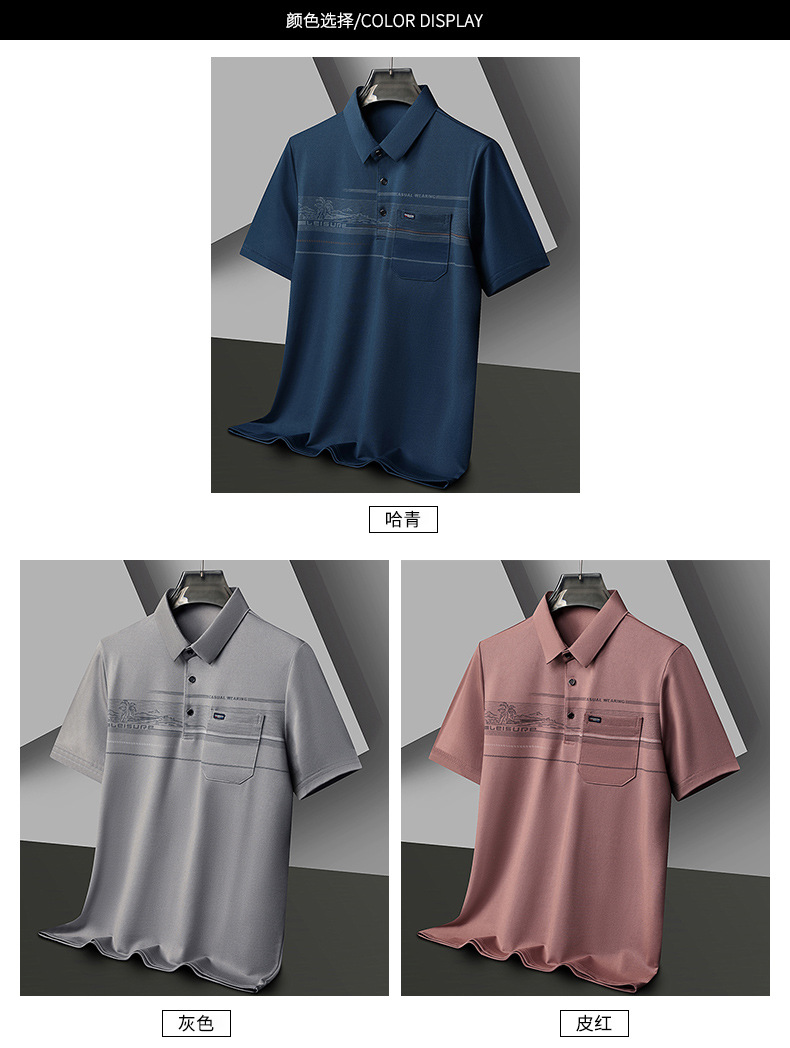 外国貿易の新型氷糸半袖poloシャツ男性ビジネスカジュアルアイロンなしシャツ襟tシャツ純色男性服