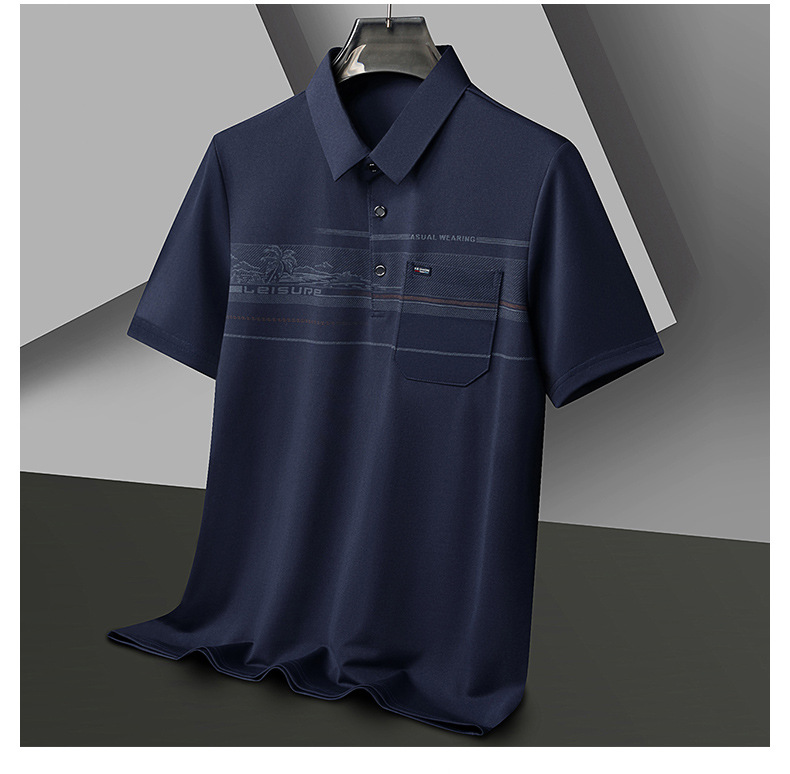 国境を越えた男性服2025夏の新型半袖ストライプの薄い襟のゆるい通気性poloシャツをワンクリックで代行する