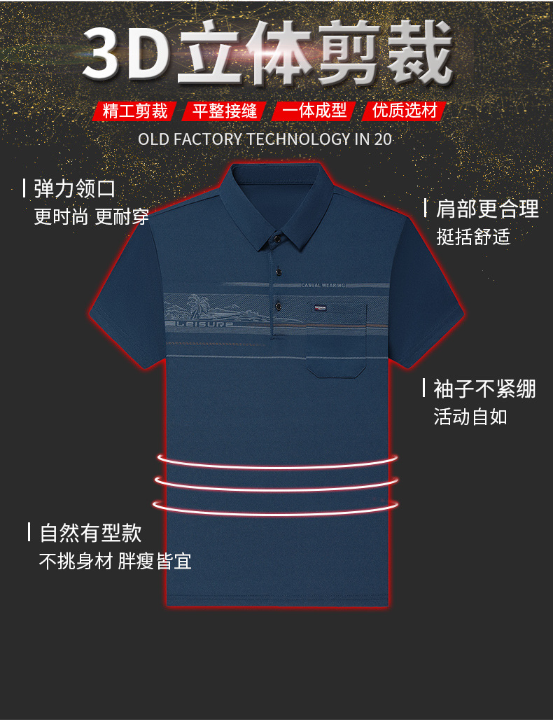 クロスボーダー専用メンズストライプ半袖tシャツ夏の薄い通気性カジュアル襟中高年poloシャツ代発