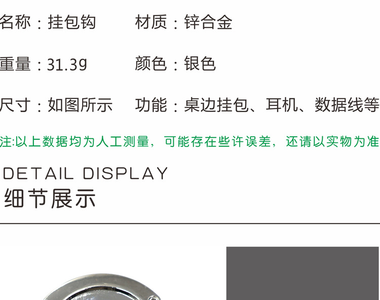 便携折叠挂包钩空胚现货批发高承重折叠加印logo桌边圆形挂钩合金