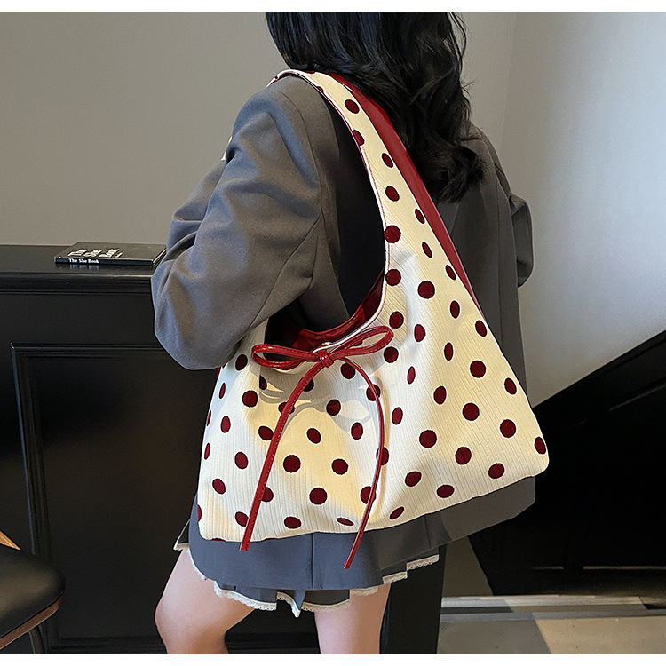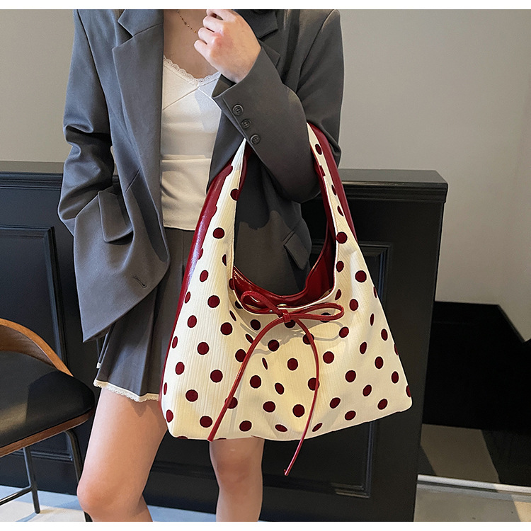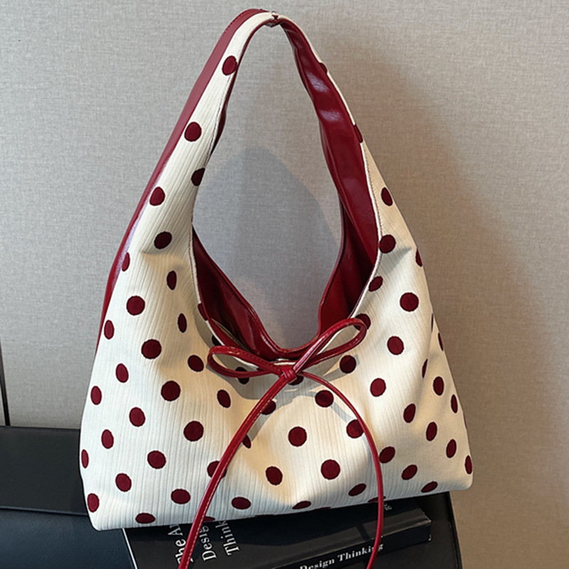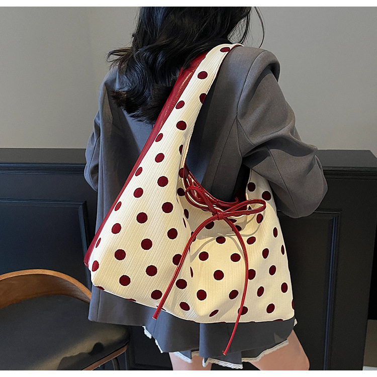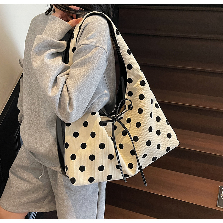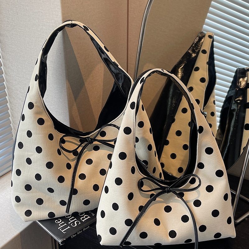 シンプルな水玉模様のリボン脇の下バッグ女性のための 2025 夏の新しいファッション高価値通勤ショルダーハンドバッグ