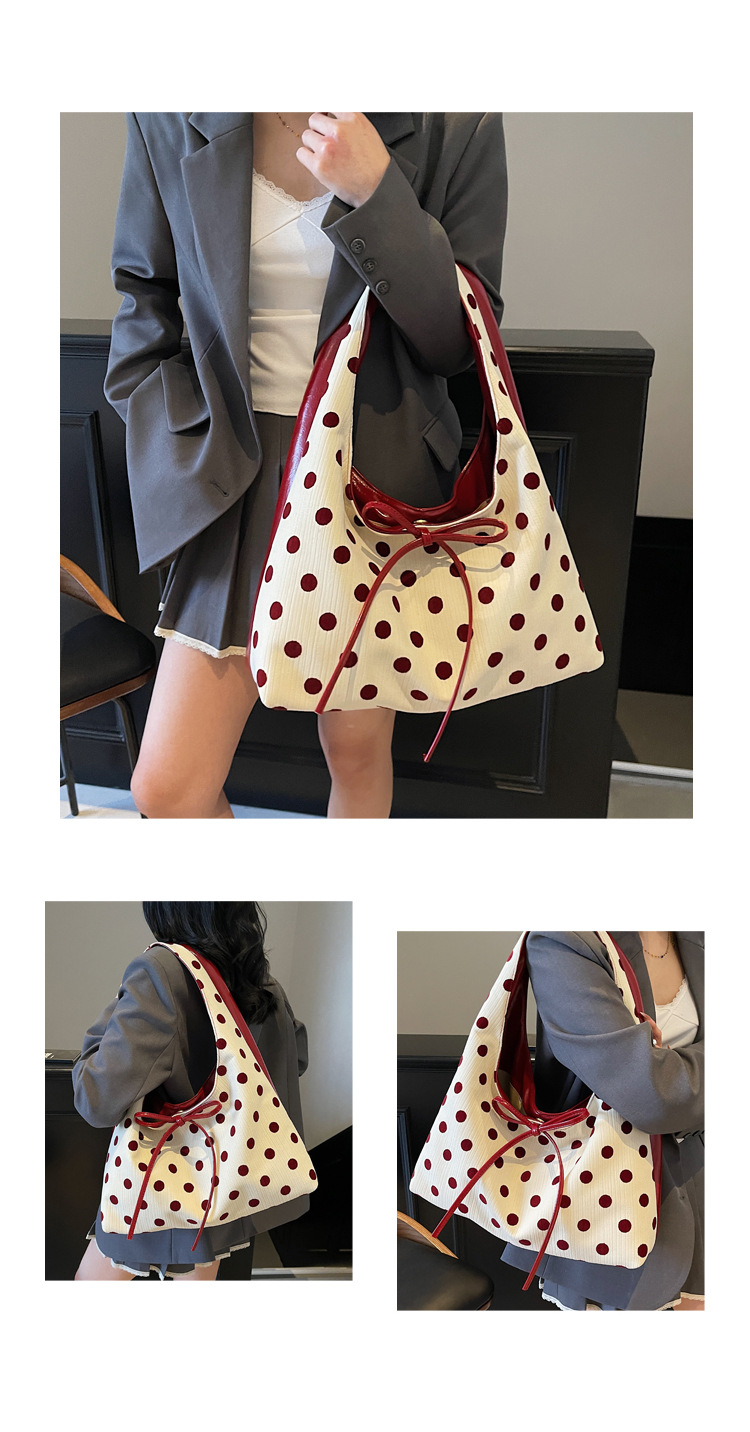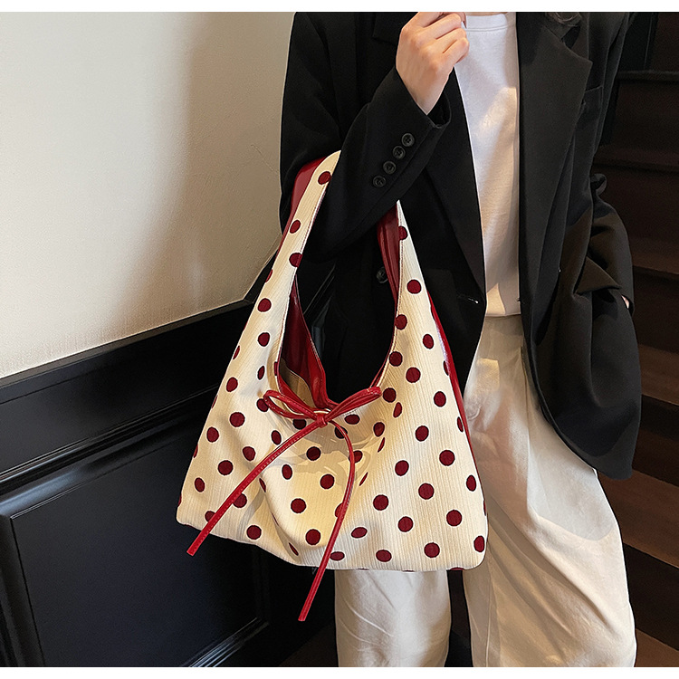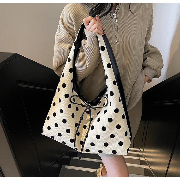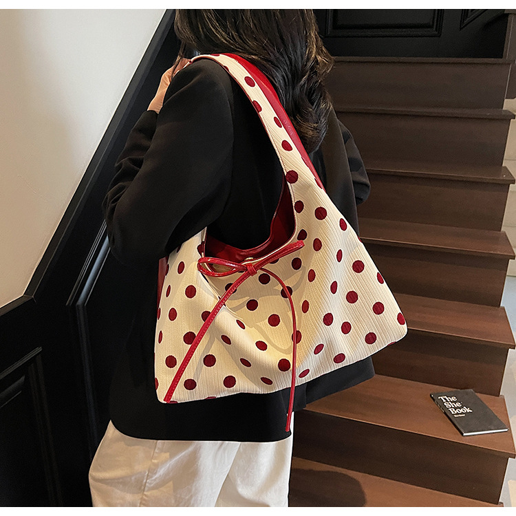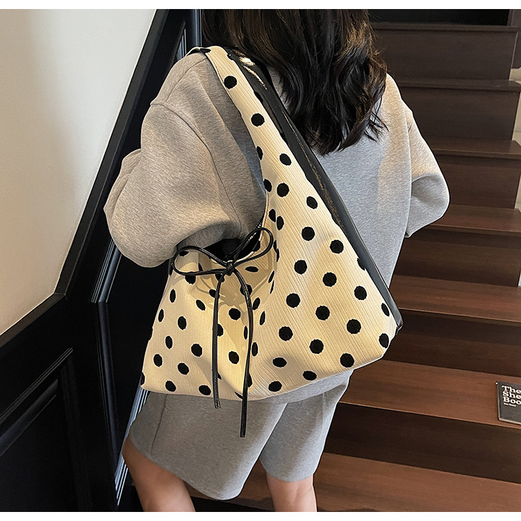 シンプルな水玉模様のリボン脇の下バッグ女性のための 2025 夏の新しいファッション高価値通勤ショルダーハンドバッグ