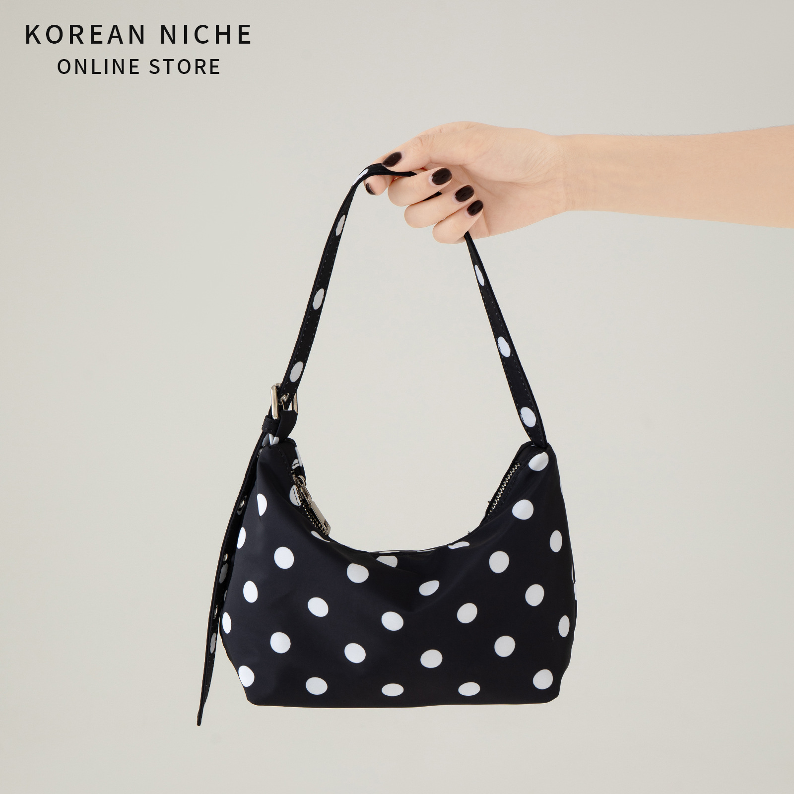 超人気のニッチな水玉模様ナイロンバッグ レディース 2025年新作 多用途 ショルダーバッグ/脇に抱えるバッグ お出かけや通勤に最適な小さめバッグ