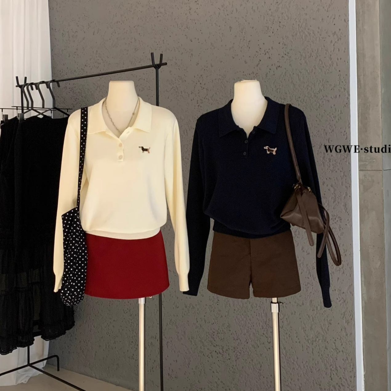 WGWE7655广州十三行女装早秋装新款小个子翻领刺绣小狗软糯针织衫