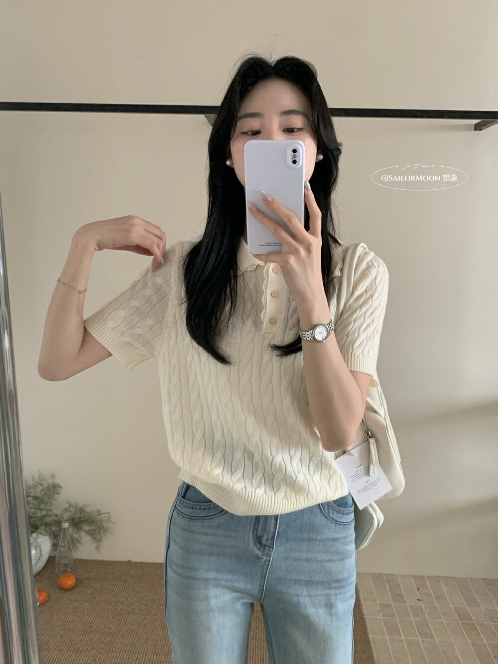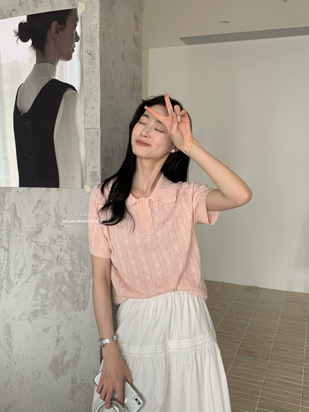 小さな新鮮な韓国人形襟半袖 Tシャツ女性のための 2025 夏の新しい甘い年齢を減らす気質ニットセータートップ