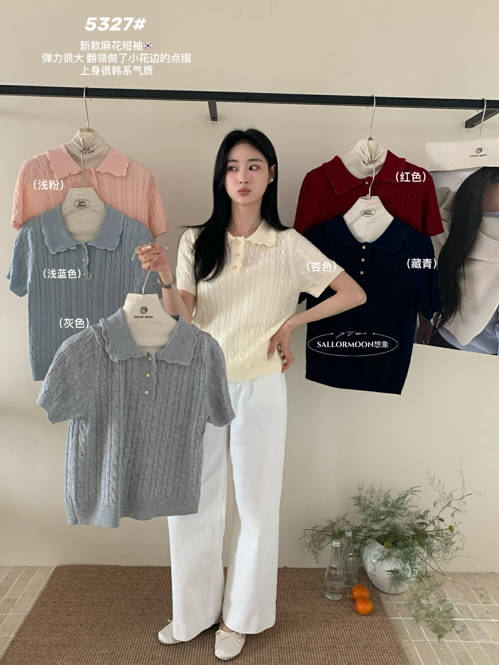 商场专柜品质夏季女式短袖冰丝针织衫麻花甜美设计休闲潮流上衣