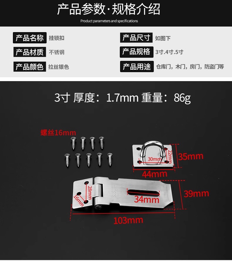 固定门栓扣搭扣锁不锈钢挂锁柜门锁扣门鼻子鼻子锁卡扣牌柜门老式