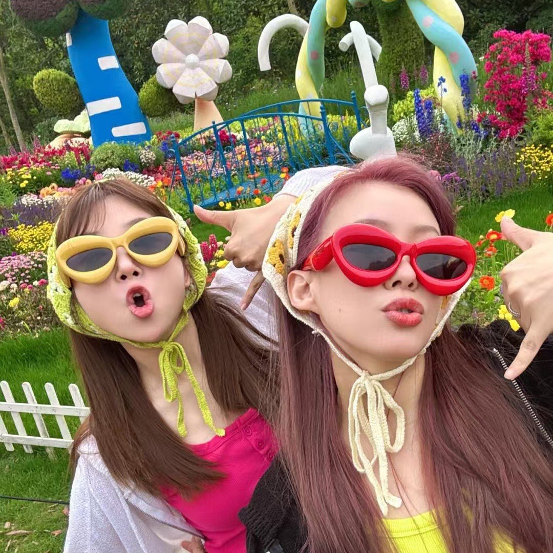 25新款欧美风跨境热卖眼镜防紫外线搞怪摆拍气球膨胀感嘴唇太阳镜