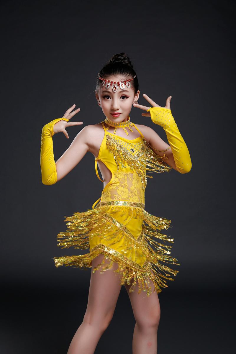 女童表演比赛新款拉丁舞亮片裙流苏儿童拉丁舞演出服少儿演出