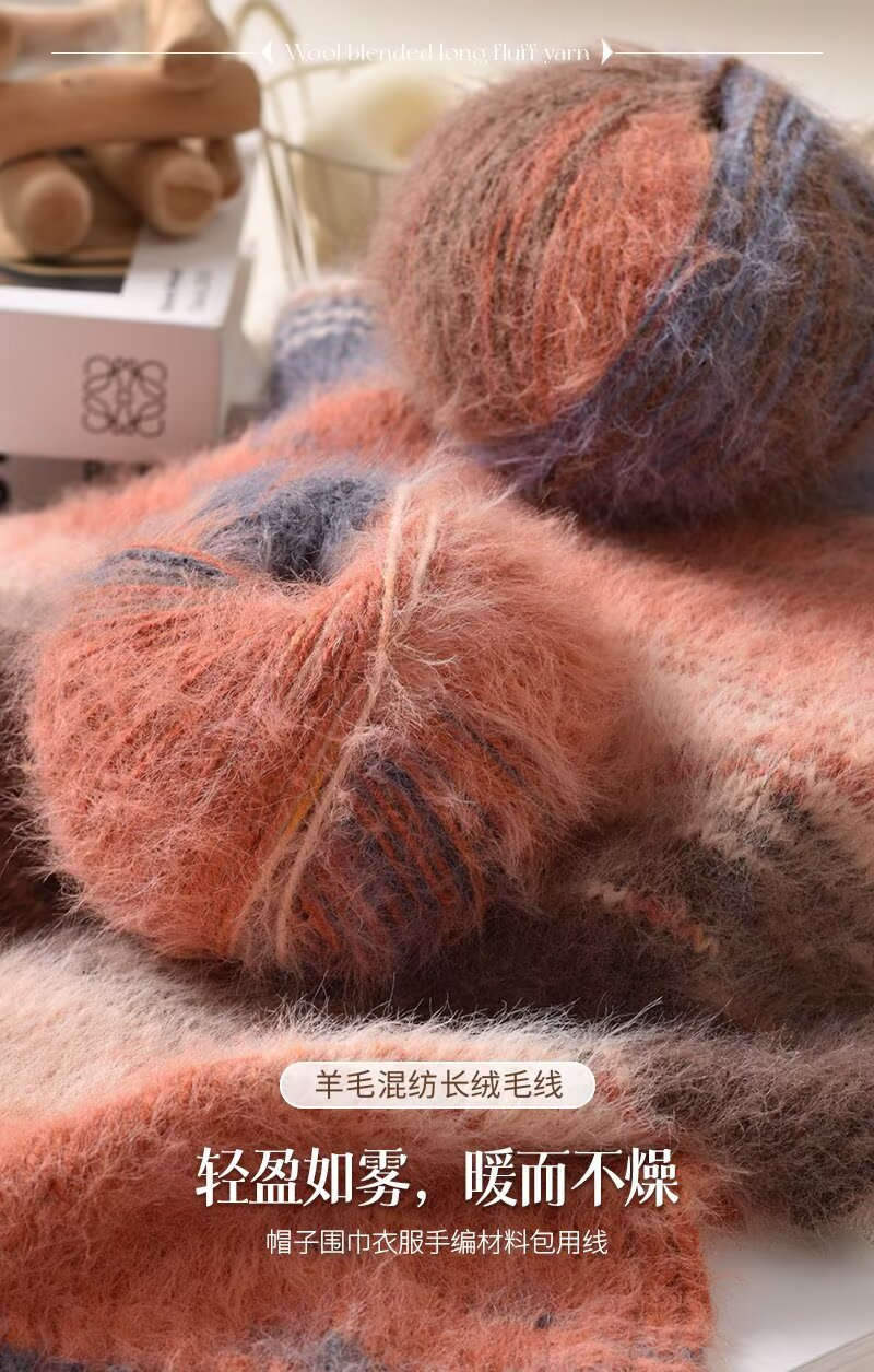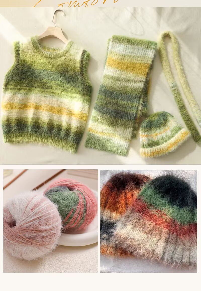 田园牧歌渐变段染变色马海毛中细线团手工编织DIY披肩帽子材料包