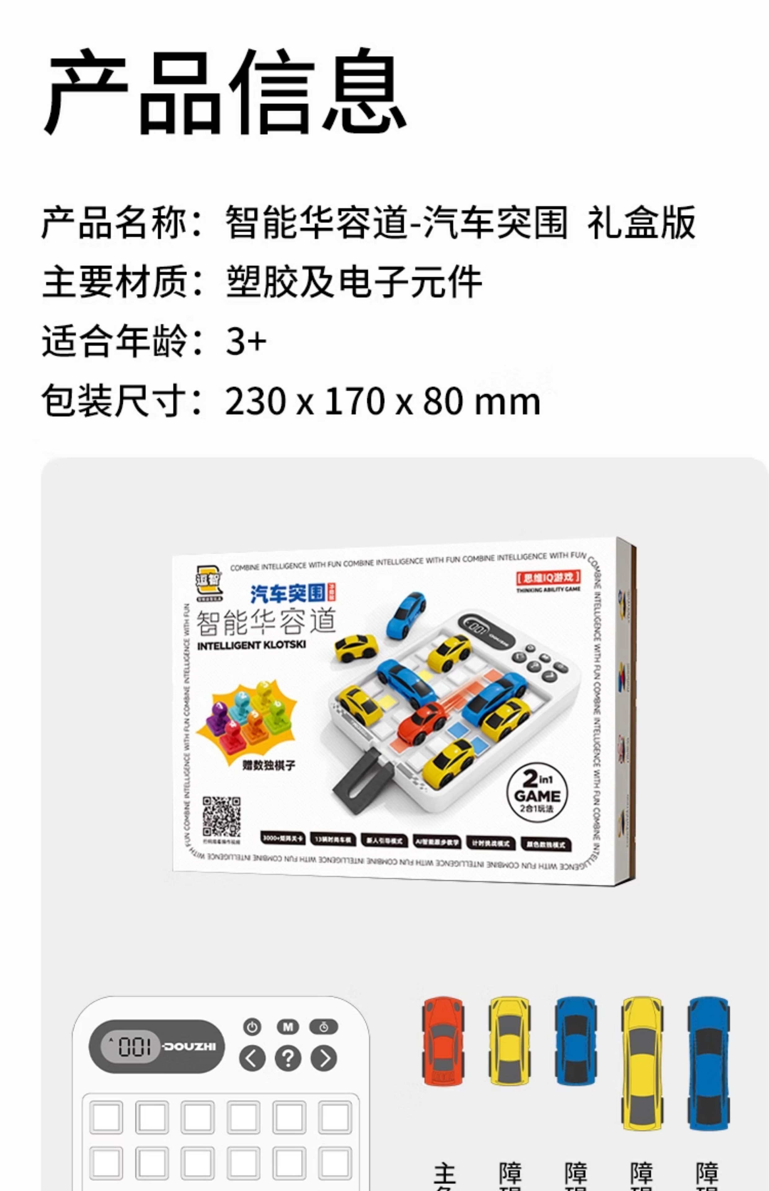 汽车智能华容道滑动益智积木拼图玩具数字智力6岁以上科教批发