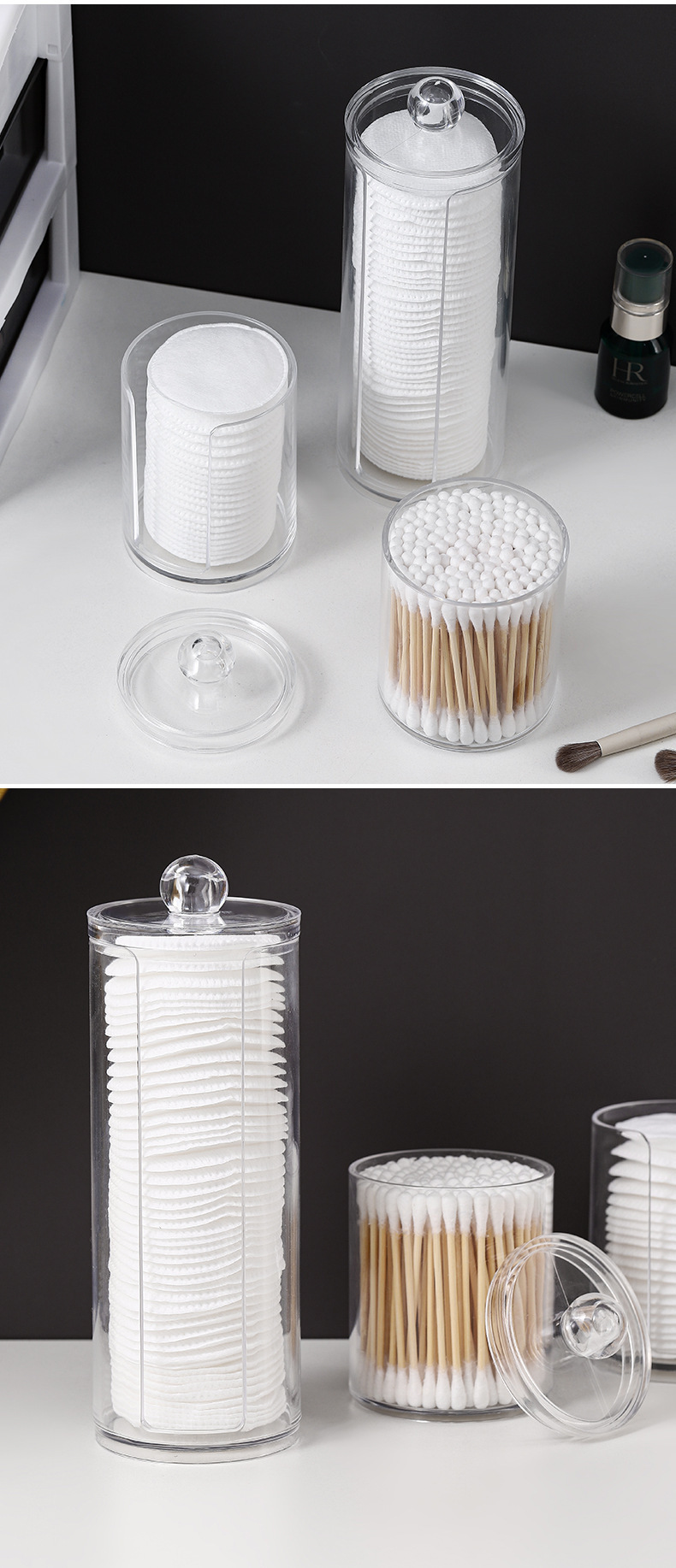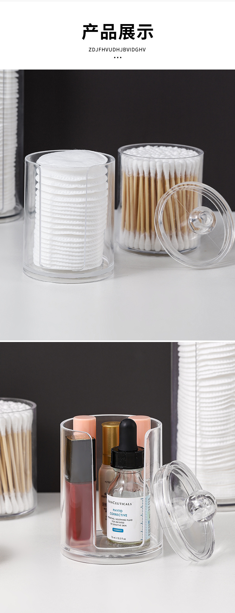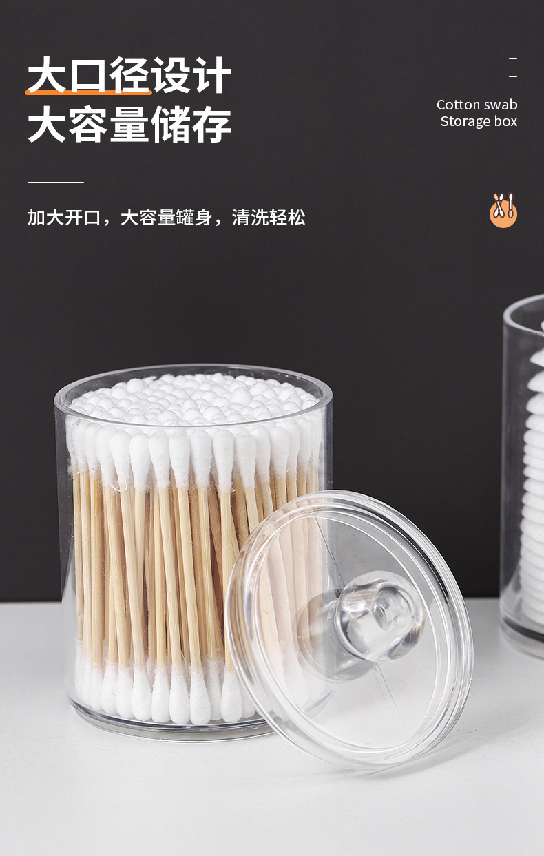 圆形亚克力棉签盒 带盖防尘化妆棉收纳盒牙线 盒网红棉签收纳盒