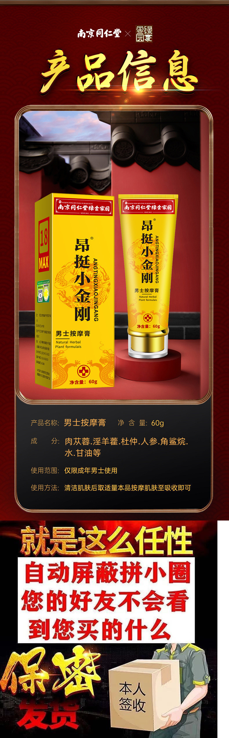 南京銅仁堂メンズリペアクリーム男性マッサージクリーム陰部メンテナンス男性メンテナンスエッセンシャルオイルヘルスケア製品