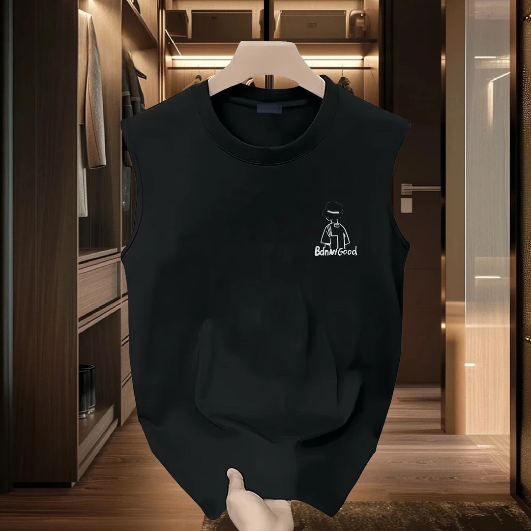2025 夏のトレンディなブランドの新しいヘビーウェイトラウンドネックベストノースリーブ tシャツルーズカジュアルメンズチョッキアンダーシャツトップ