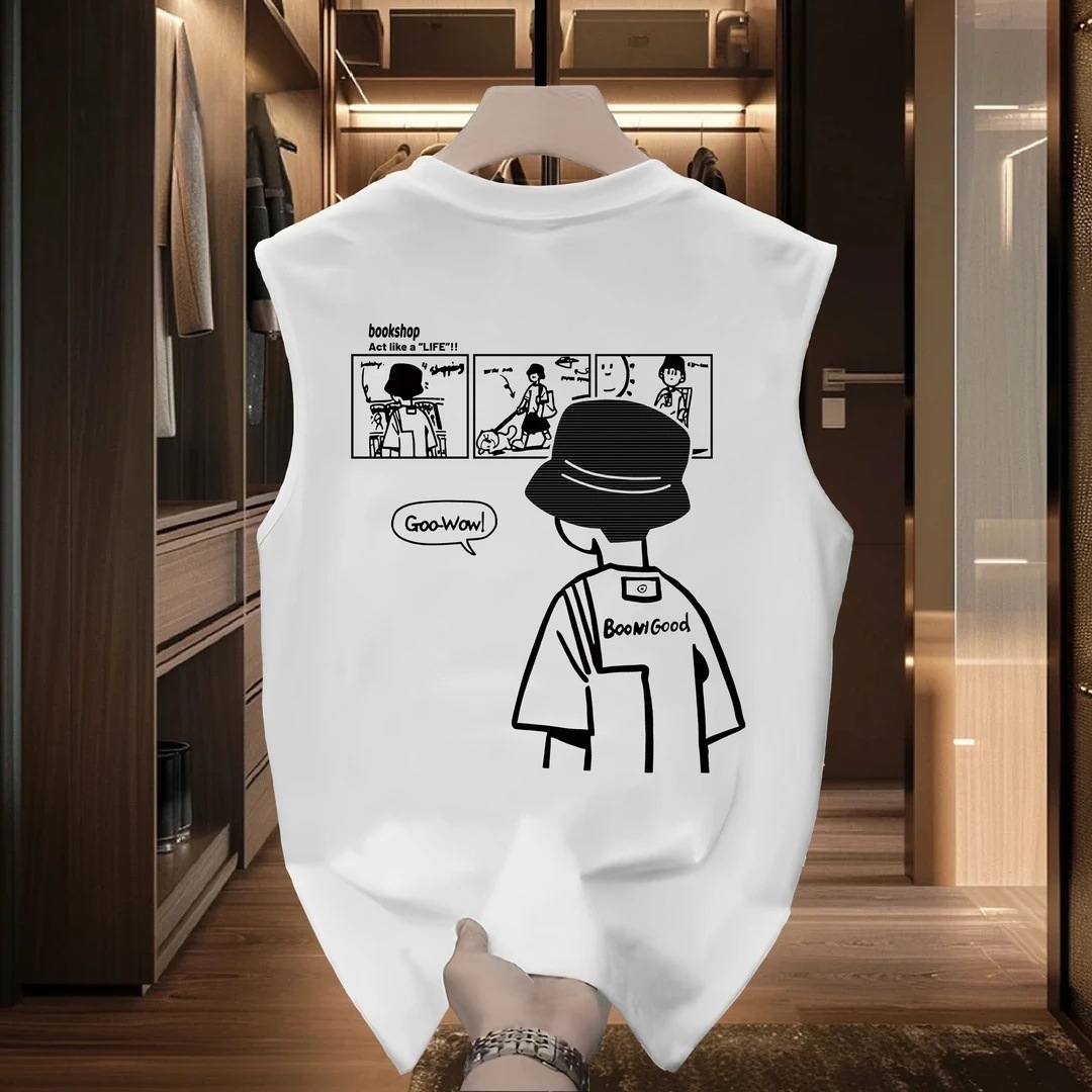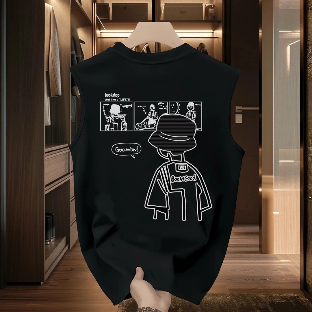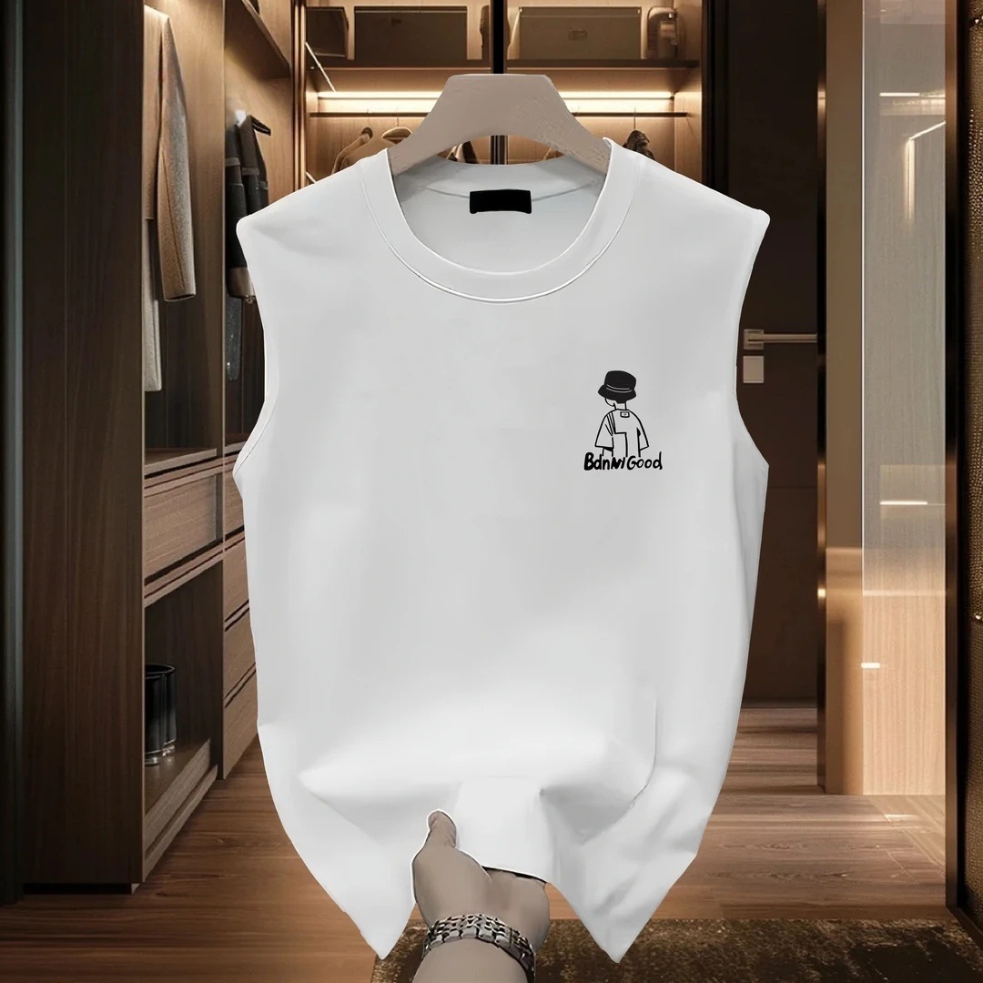 純綿トレンディなブランドプリントノースリーブベストメンズ夏インカジュアルスポーツベストルーズボトムメンズ半袖Tシャツ
