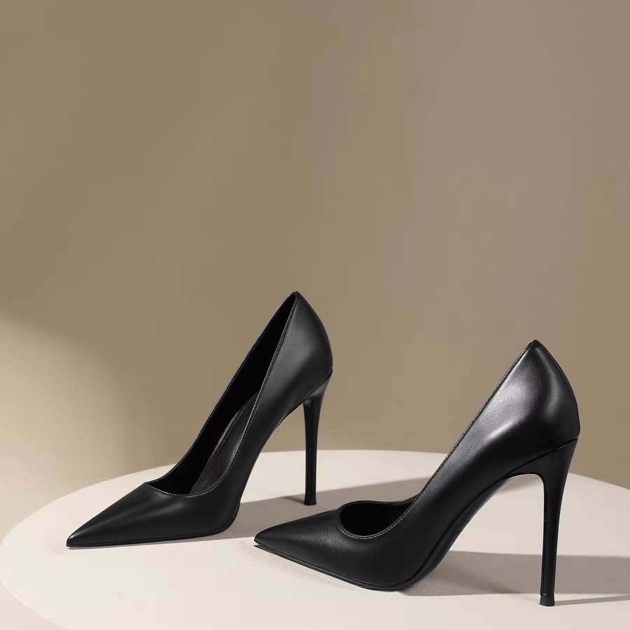 黒の柔らかい皮のハイヒールの女性の細いかかとのセクシーな先の2023年の春秋の新型のフランスの気質の浅い口の仕事の靴