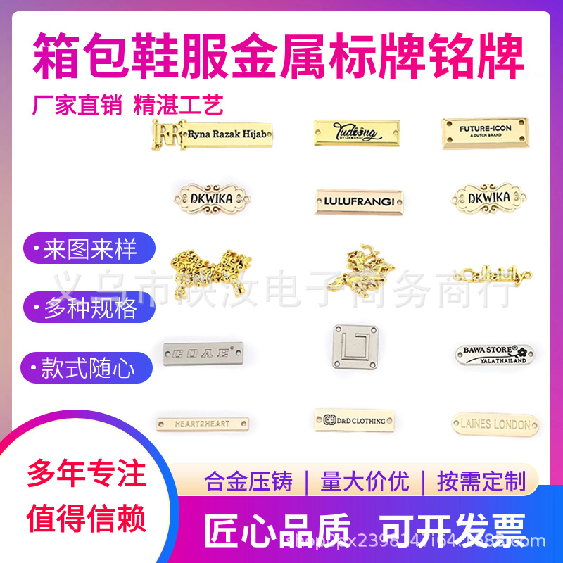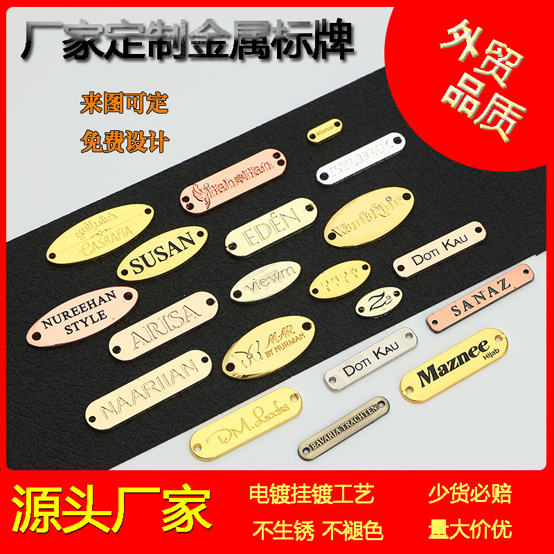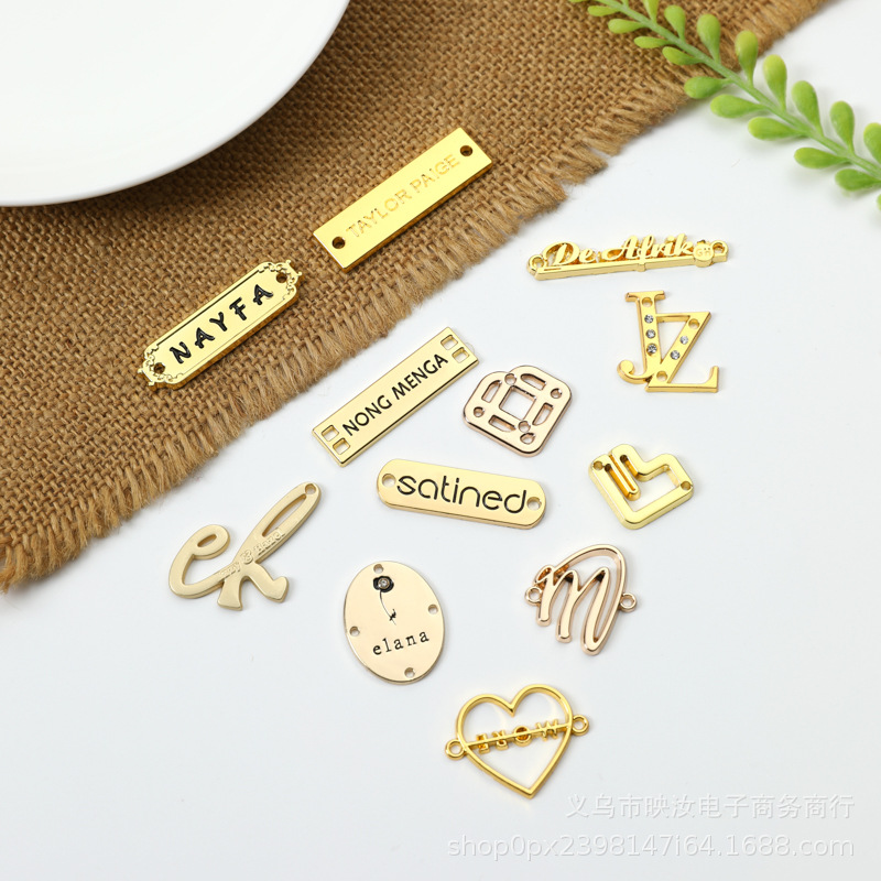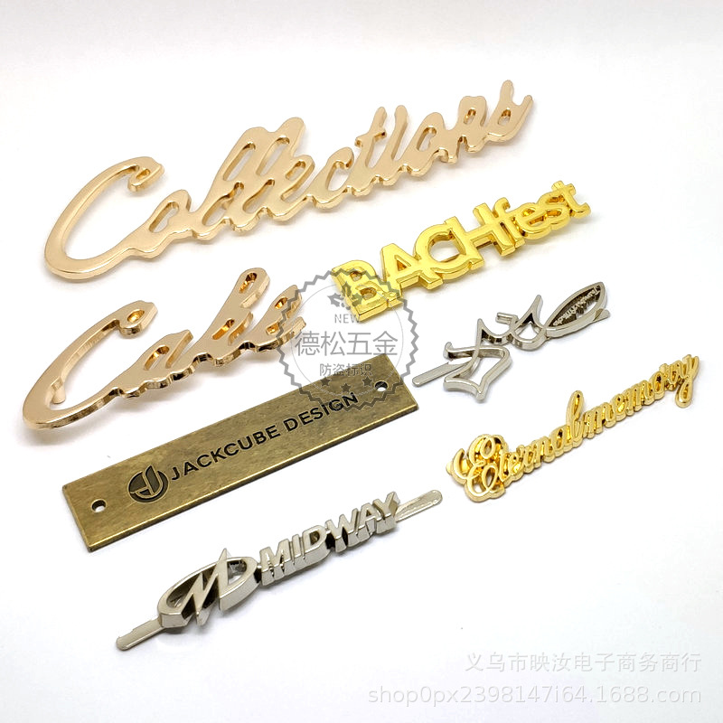 锌合金属定 制DIY字母logo帽子金属铭牌合金饰品配件镂空缝线标牌
