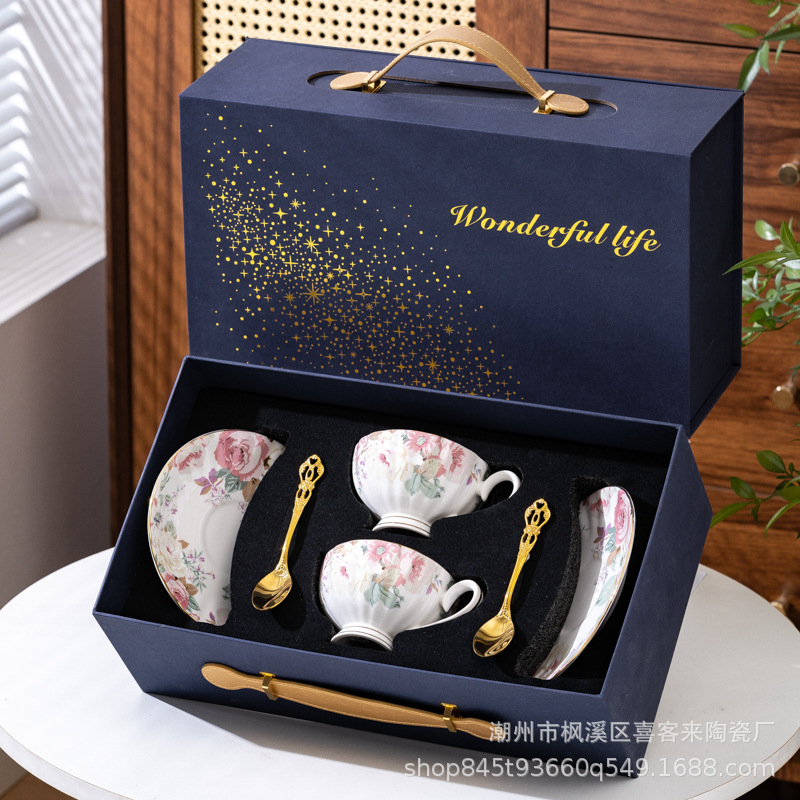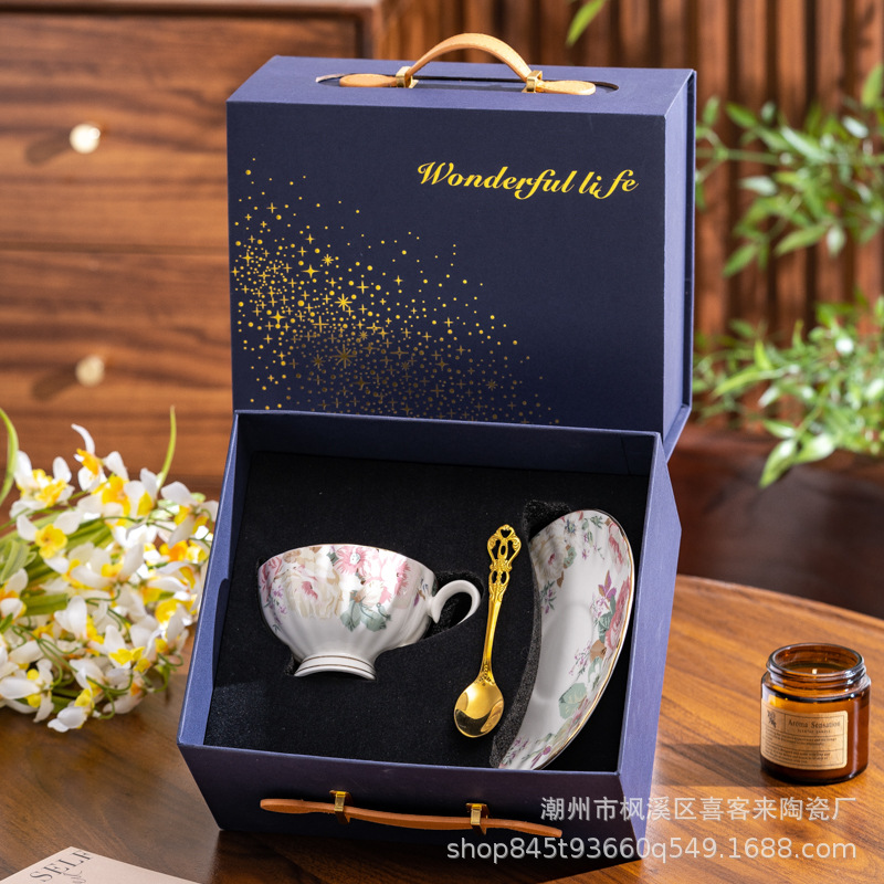 陶磁器レトロ高颜値骨磁器ヨーロッパ式コーヒーカップセット午後茶器ギフトボックス高級感カップカップ皿