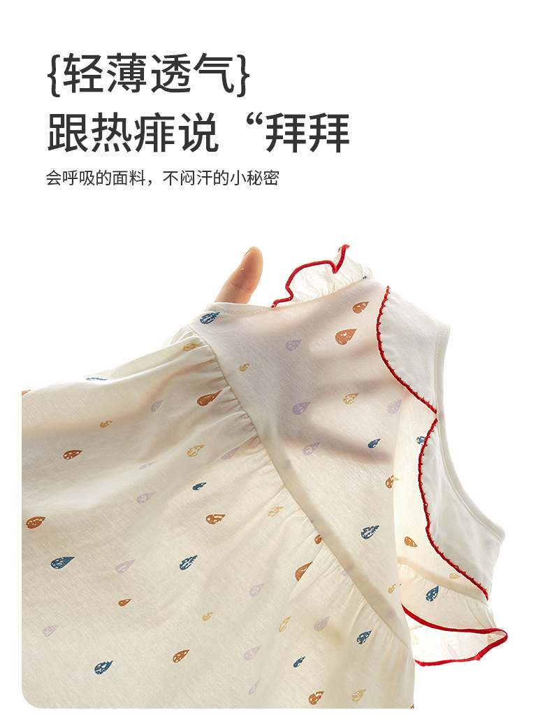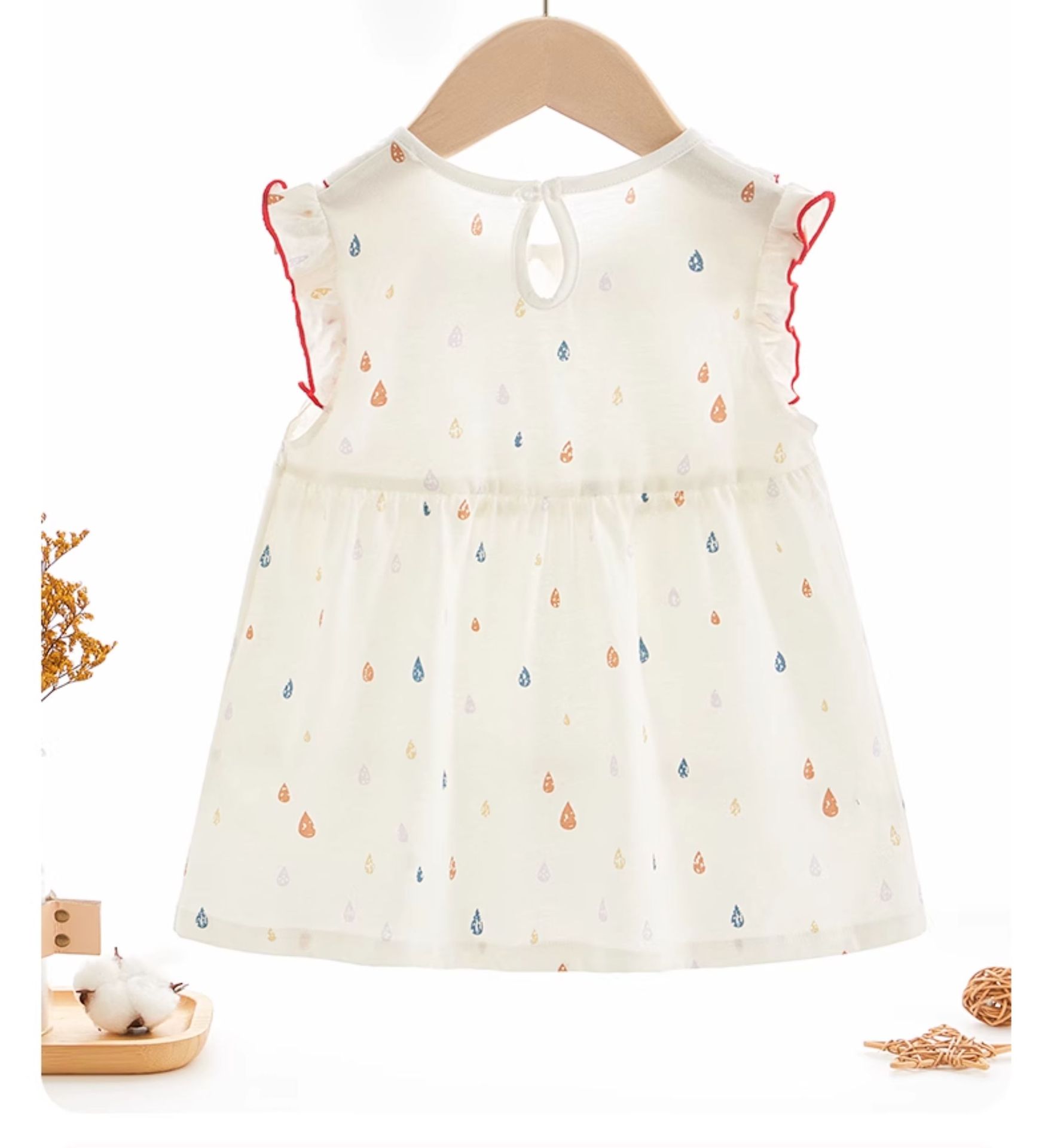2025夏の新型女の子の洋気カラーのサスペンダーのスカートの波の点のワンピースの赤ちゃんの丸い点の袖なしのスカートはかわいいです。