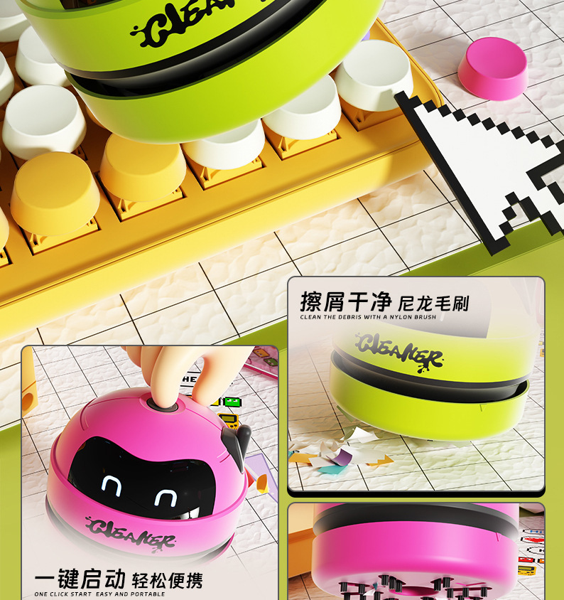小型デスクトップクリーナーハンドヘルドワイヤレスデスクデスクトップキーボード自動クリーニングゴムくずダスト掃除機