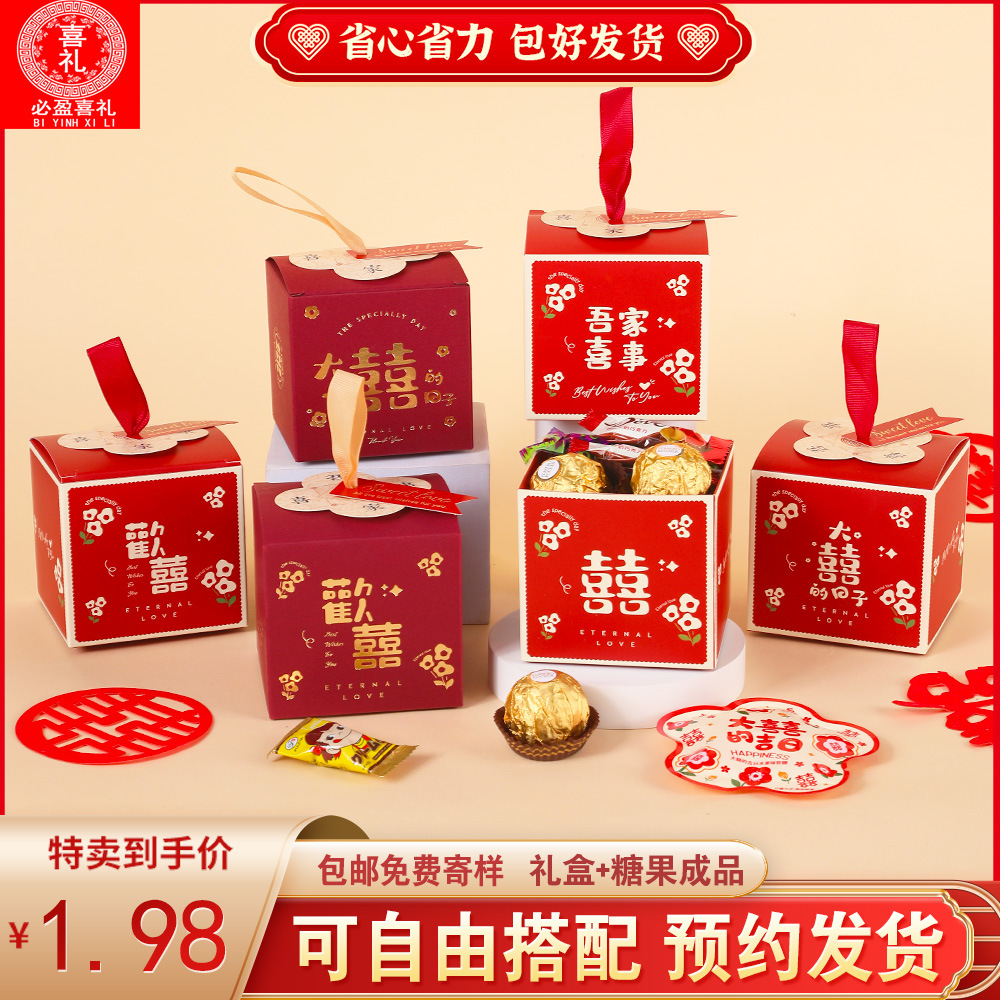 結婚喜糖完成品含糖礼箱中国風結婚式手提げ袋混合チョコレート含糖糖箱包