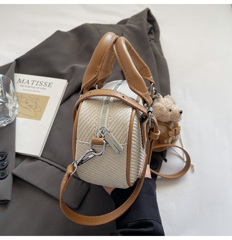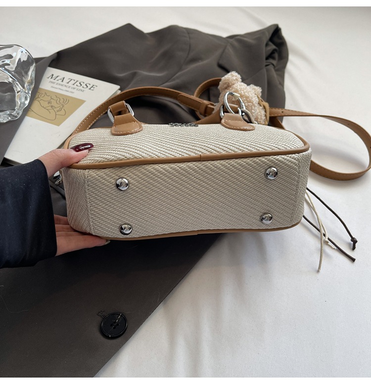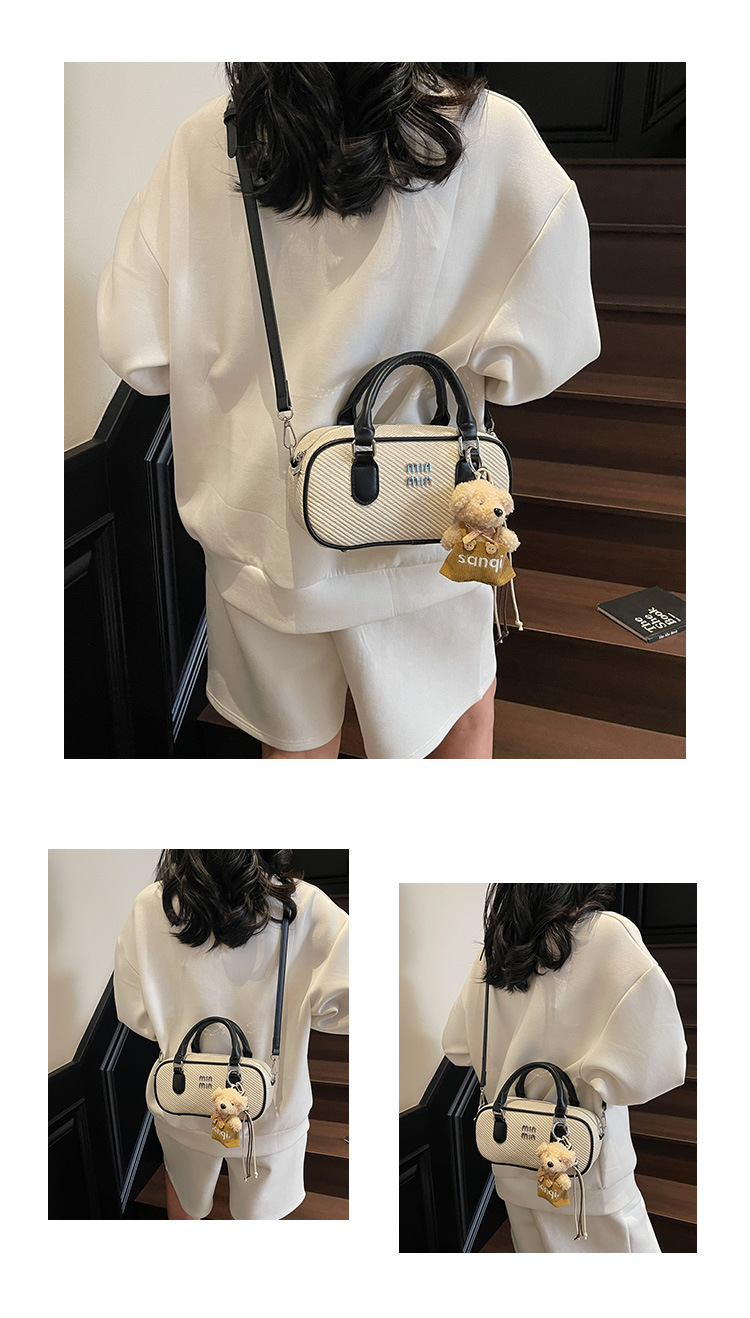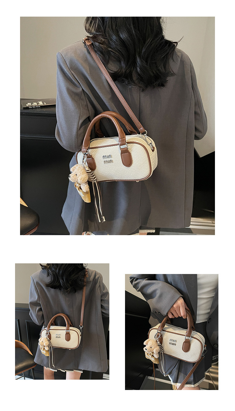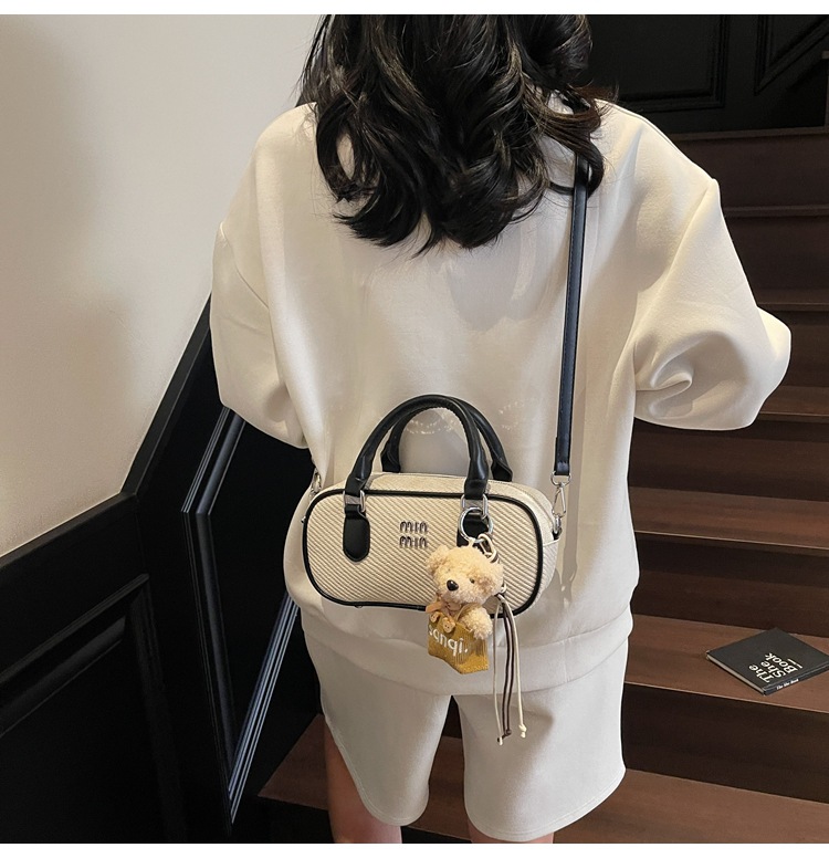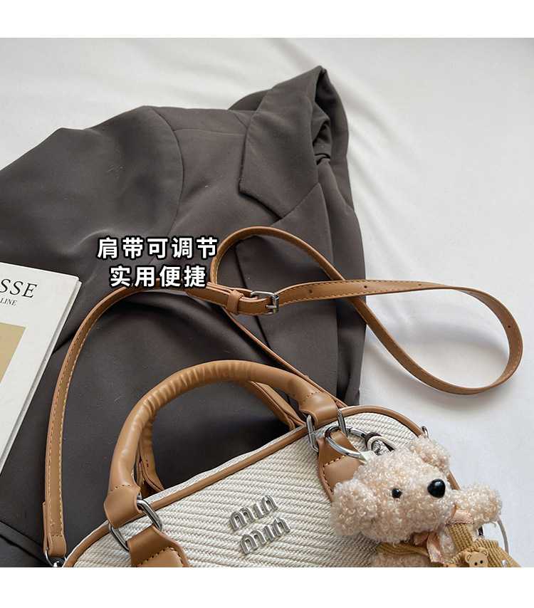 韩版潮流时尚斜跨水桶包简约高颜值毛绒撞色复古单肩包小众洋气包