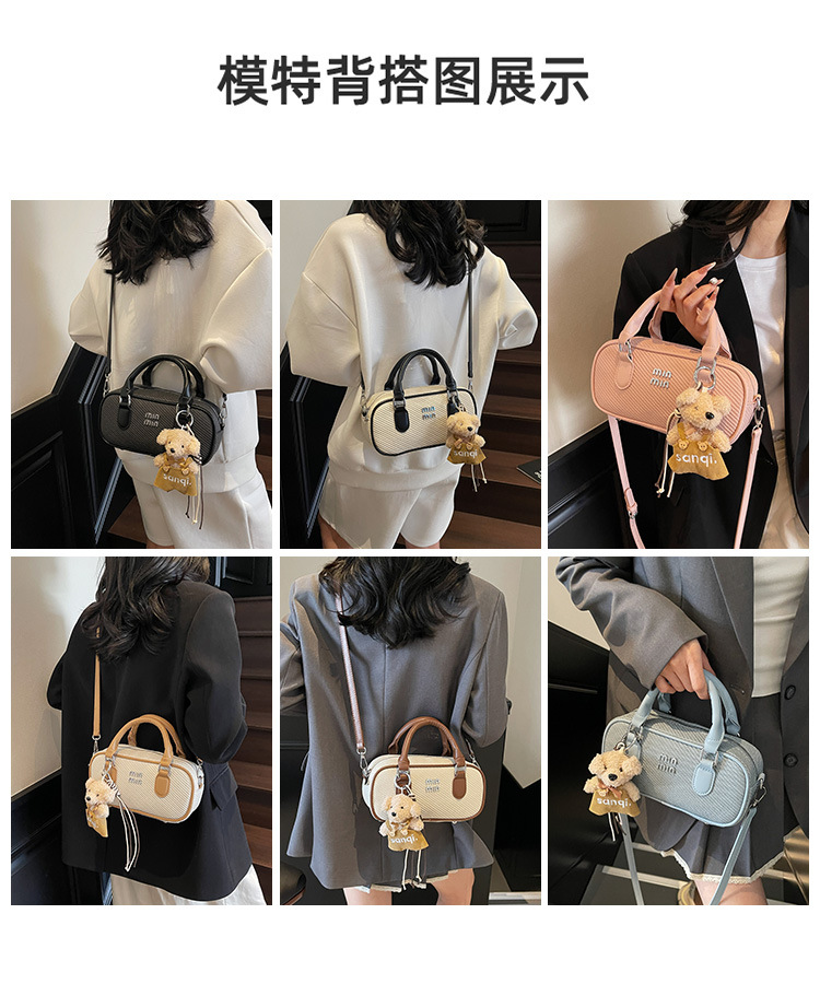 韩版褶皱手提水桶包潮流时尚单肩包高级感通勤风包简约外出斜挎包