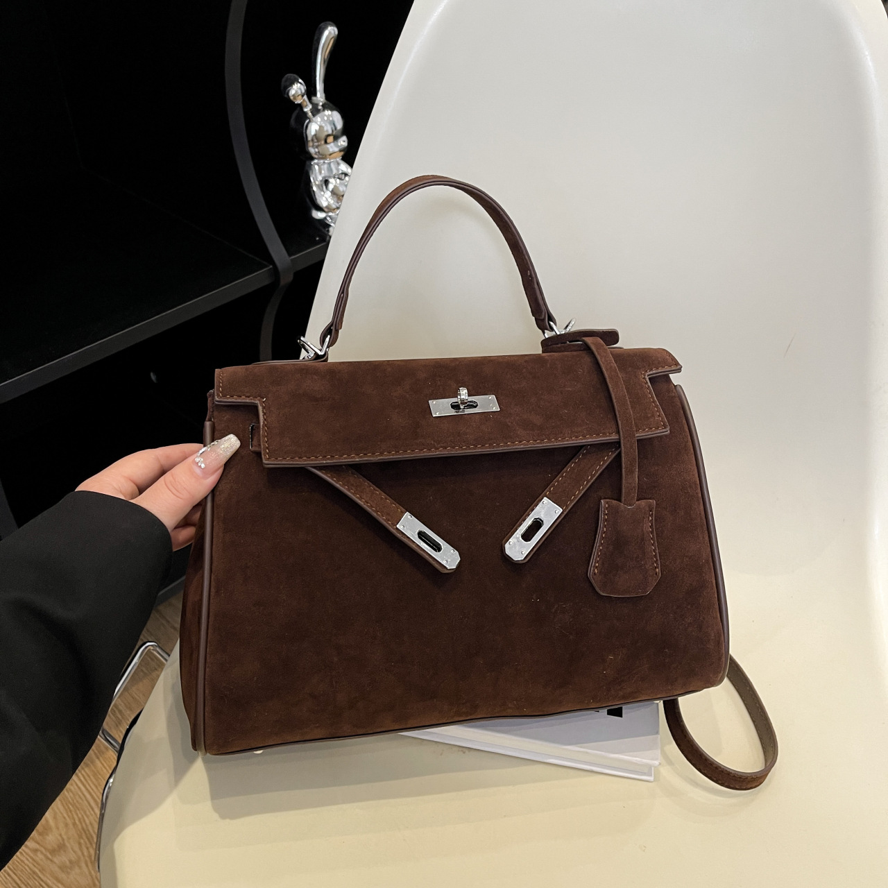 韩版撞色麂皮绒手提包小众设计通勤腋下包女时尚百搭高级感单肩包