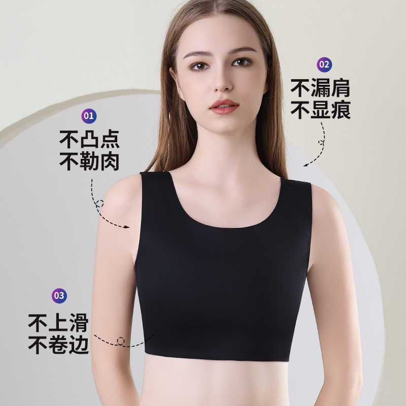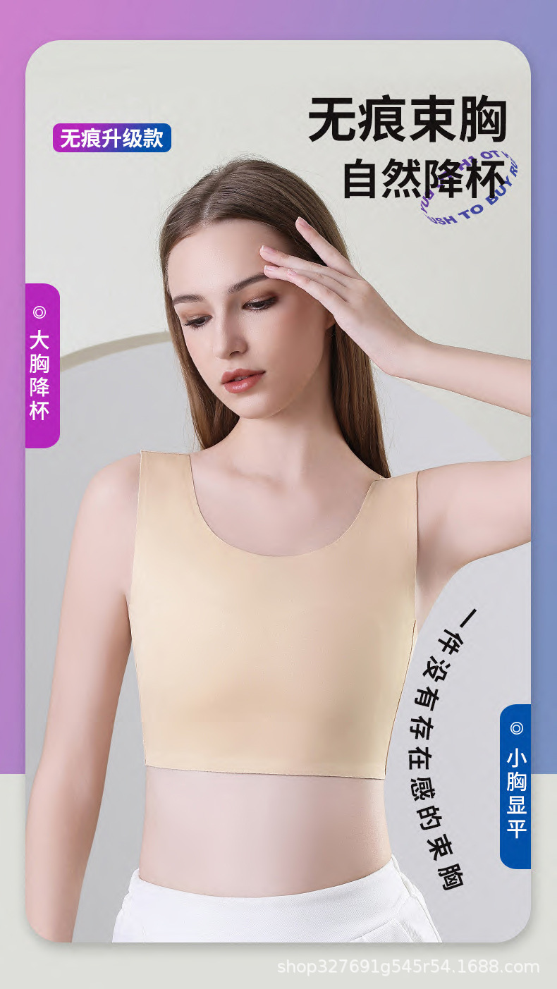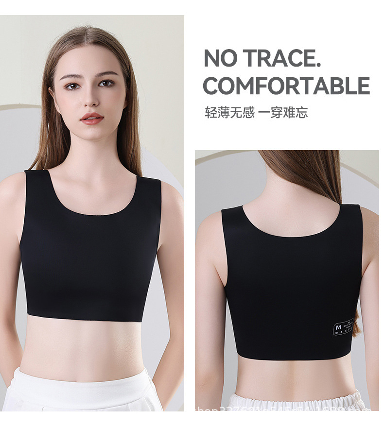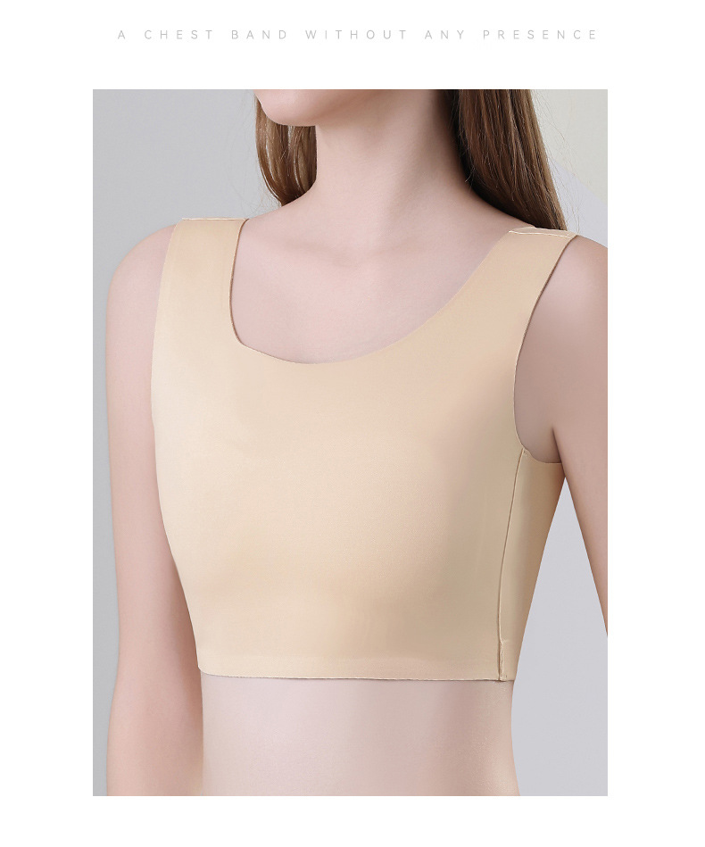 シームレスな胸当てブラ、大きな胸を小さく見せる秋冬モデル、耐震スポーツ学生用胸当てブラ、平らな胸を整える