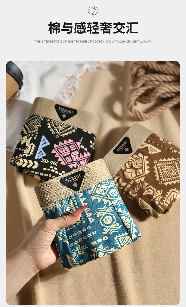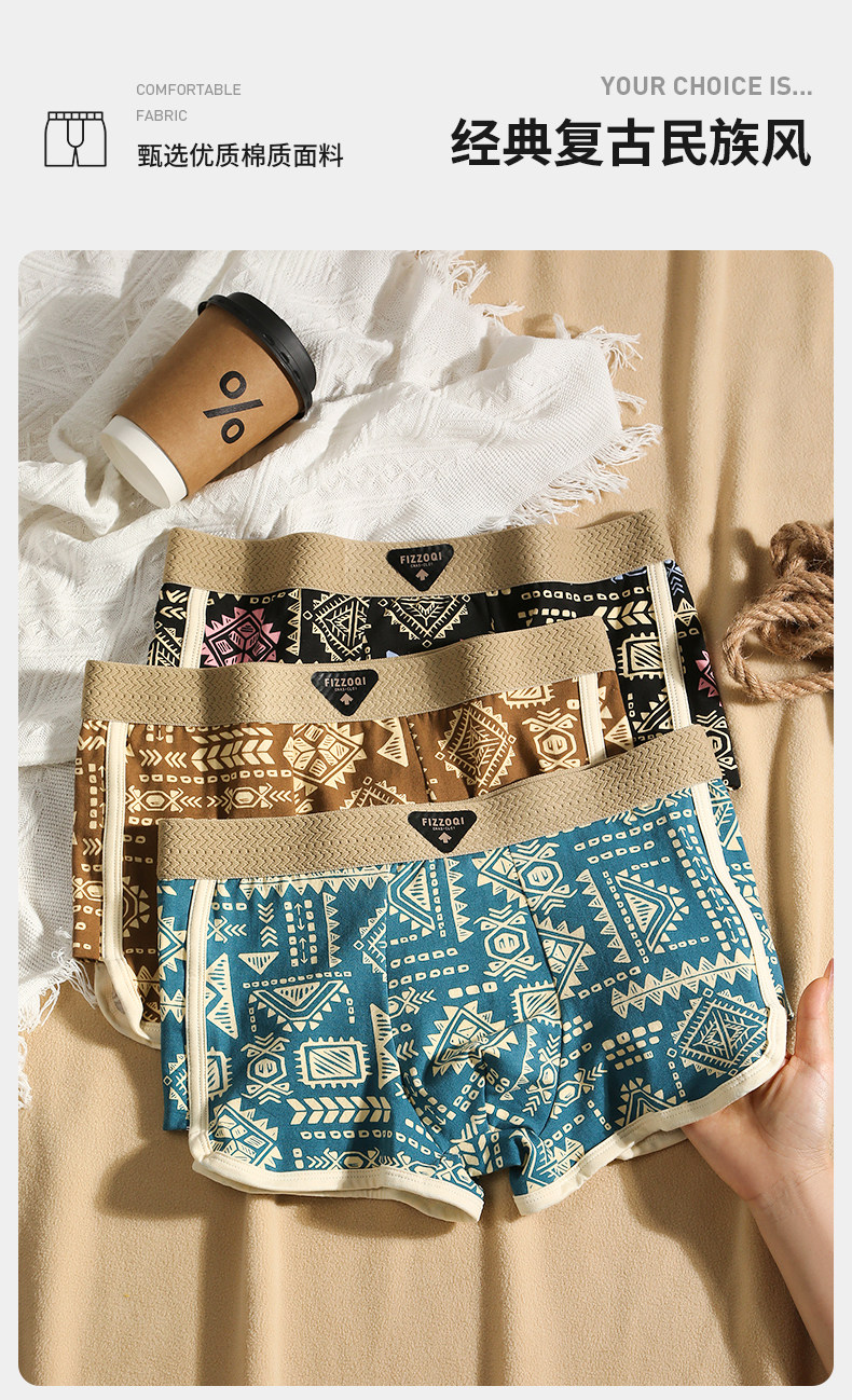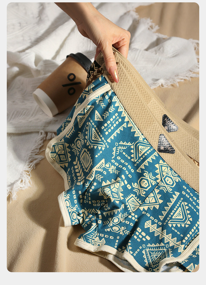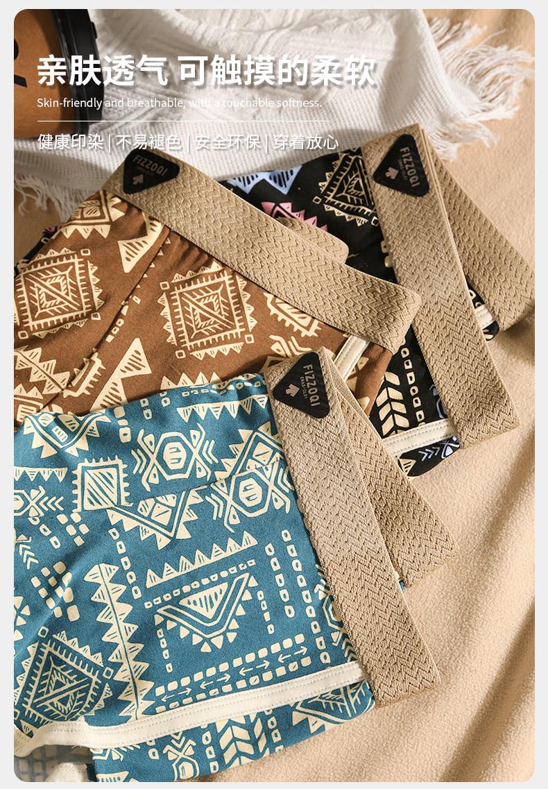 レトロエスニックスタイルメンズ下着トレンディな大きいサイズカジュアルホームボクサーブリーフ新しい快適で通気性のある男の子のパンツ