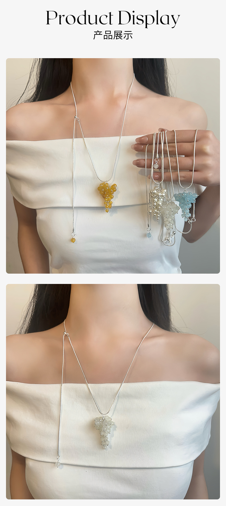 チタン鋼天然石ブドウの房ロングネックレス女性のための 2025 新しい非退色セーターチェーンライト高級ハイエンドアクセサリー