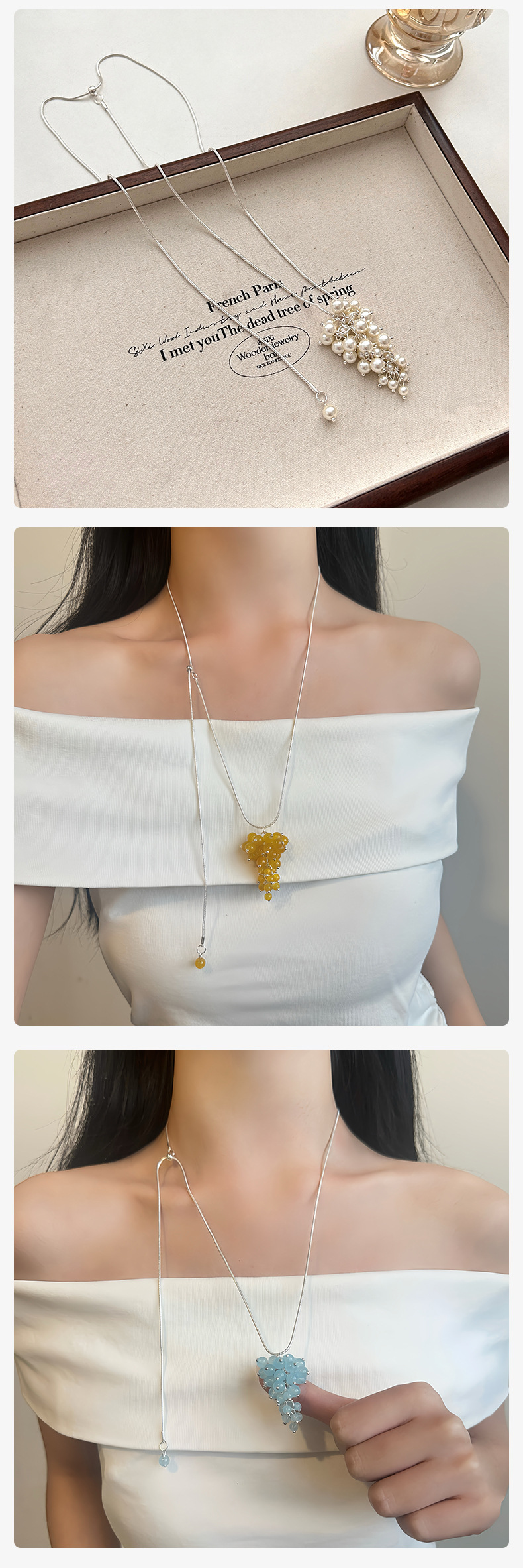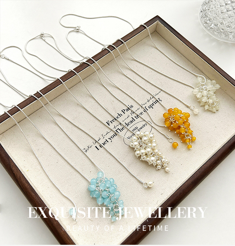 シルバーグレープストリングネックレス,パールグレープビーズネックレス,白ぶどうビーズネックレス,ブルーグレープビーズネックレス,イエローグレープビーズネックレス