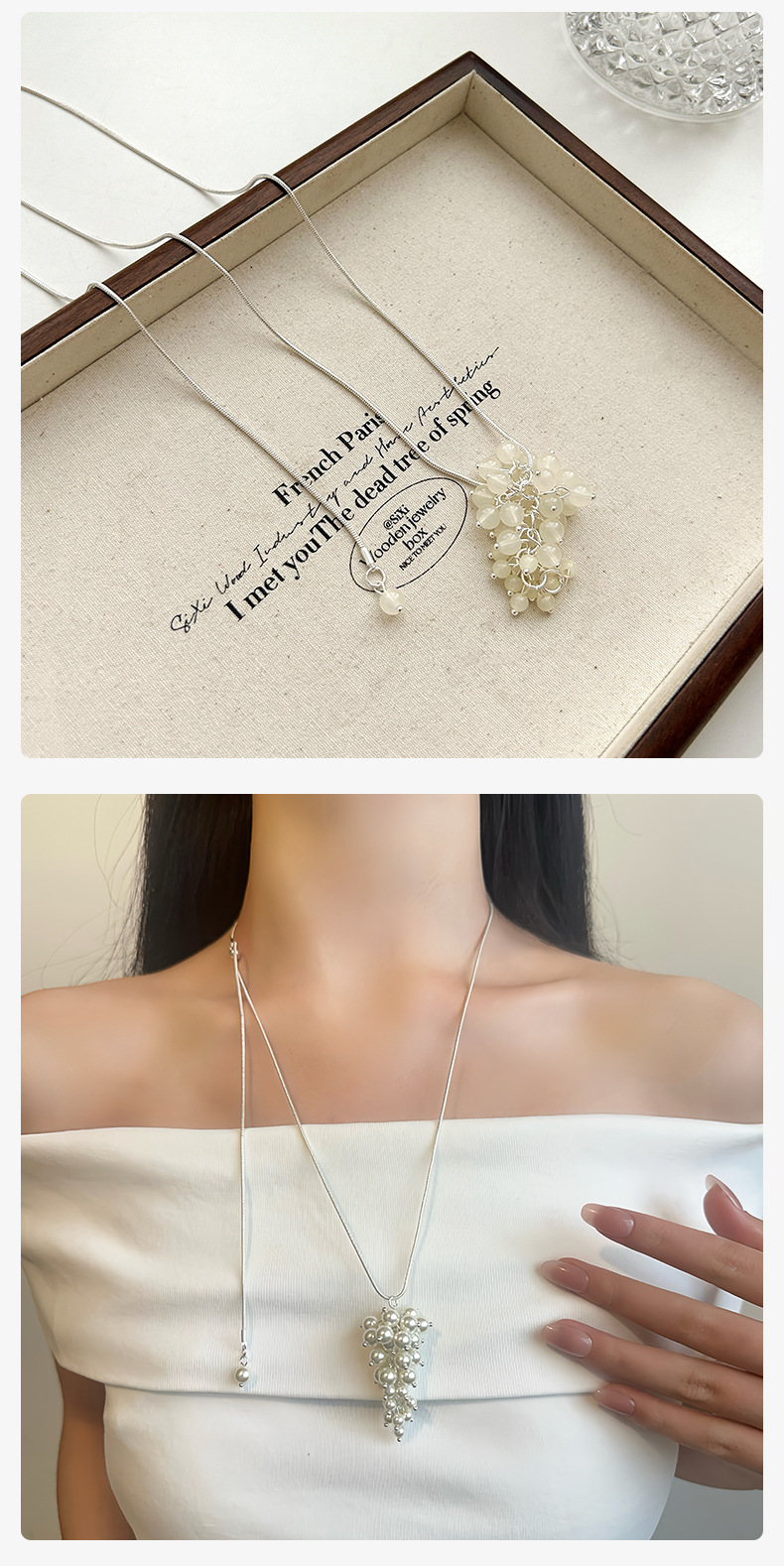 韓国のブロガーinsと同じ銀のブドウのチェーンのネックレスの女性の長いタイプは真珠のブドウのチェーンの毛のチェーンの装飾の女性を引き出します。